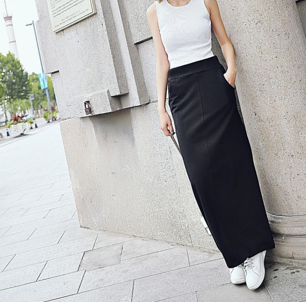 ボトムス ボトム おすすめ おしゃれ お洒落 激安 安い 送料無料 プチプラ スカート ロング スカート タイト スカート ハイ ウエスト マキシ丈 アンクル丈 コットン 綿 ストレッチ ポリエステル ウエスト ゴム 動きやすい 韓国 ヒップアップ 流行り かわいい 可愛い リラックス きれいめ 楽ちん 春 スプリング 夏 サマー ストリート オフィス カジュアル 秋 レディース 女性用 30代 20代 S M L XL 黒 ブラック 大人カラー モノトーン