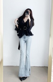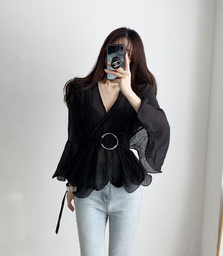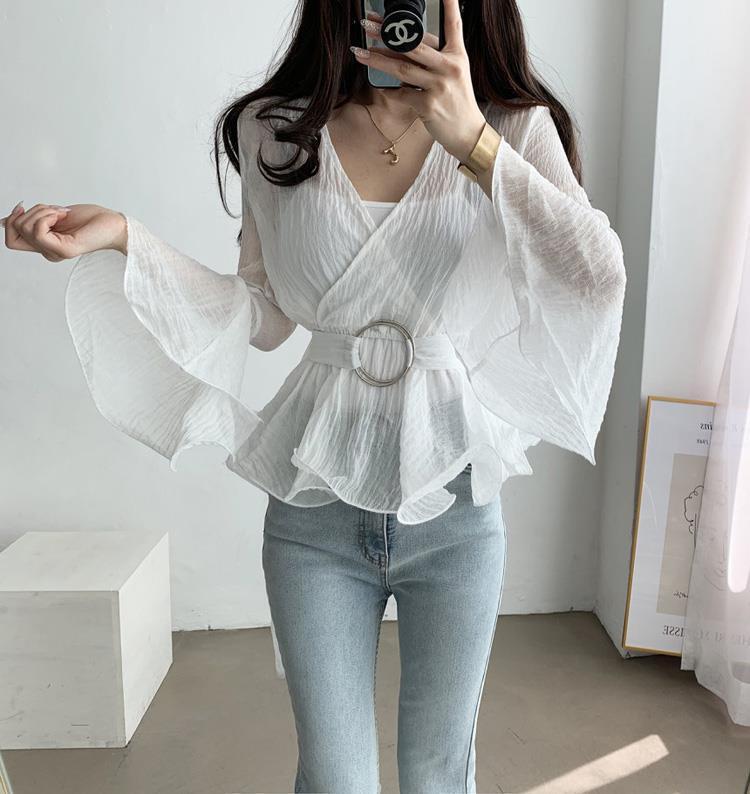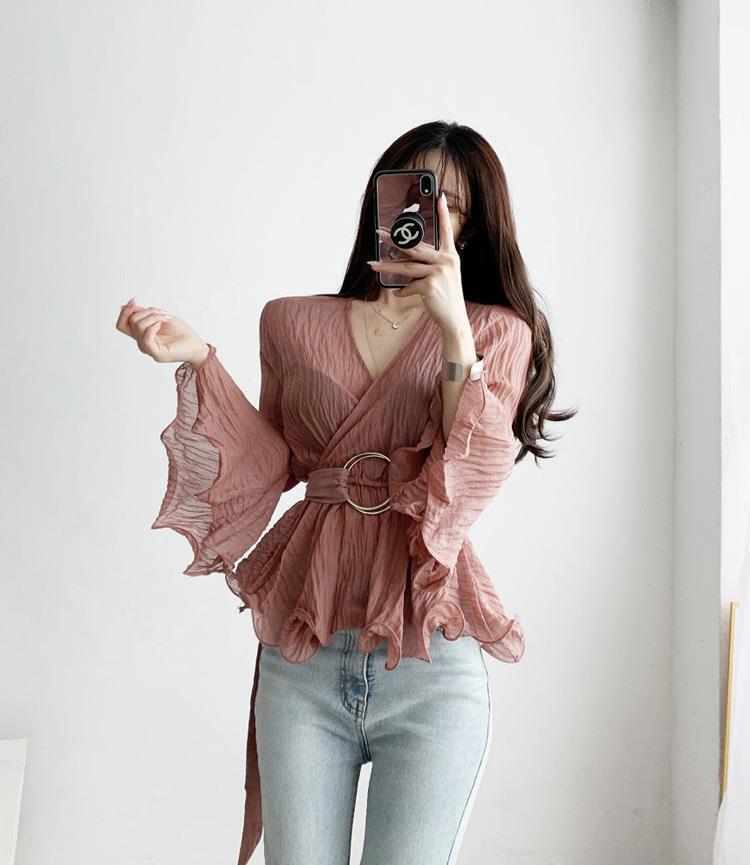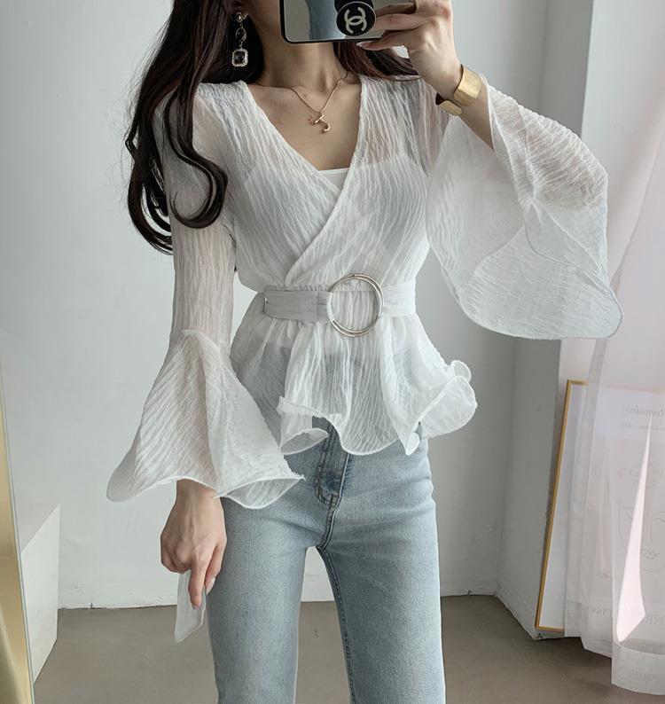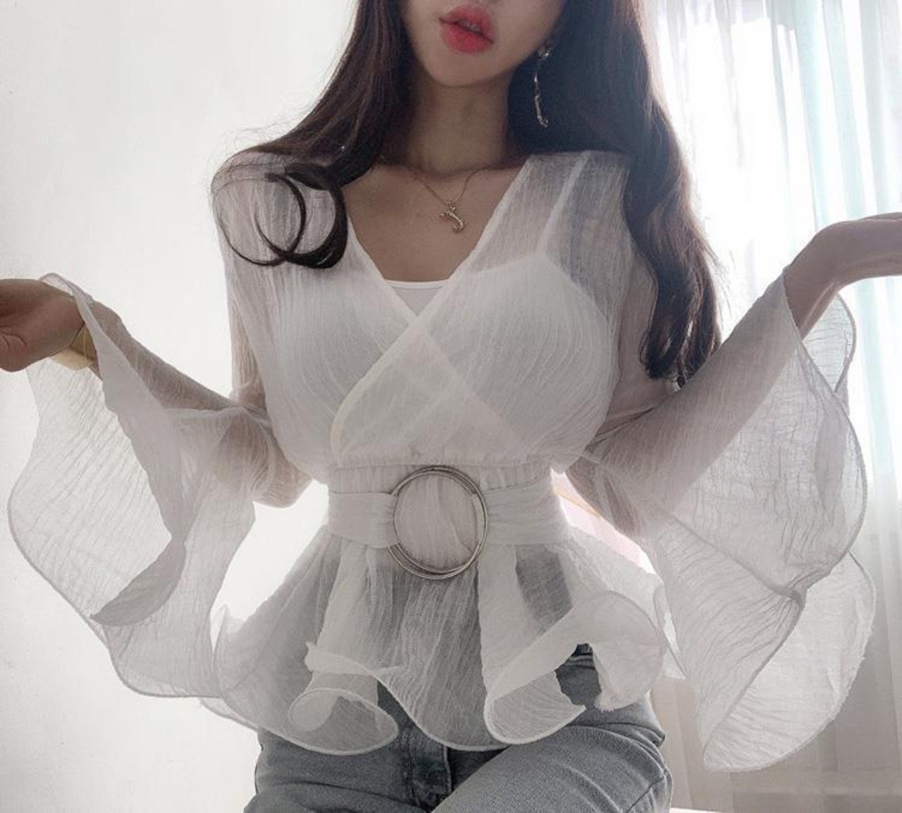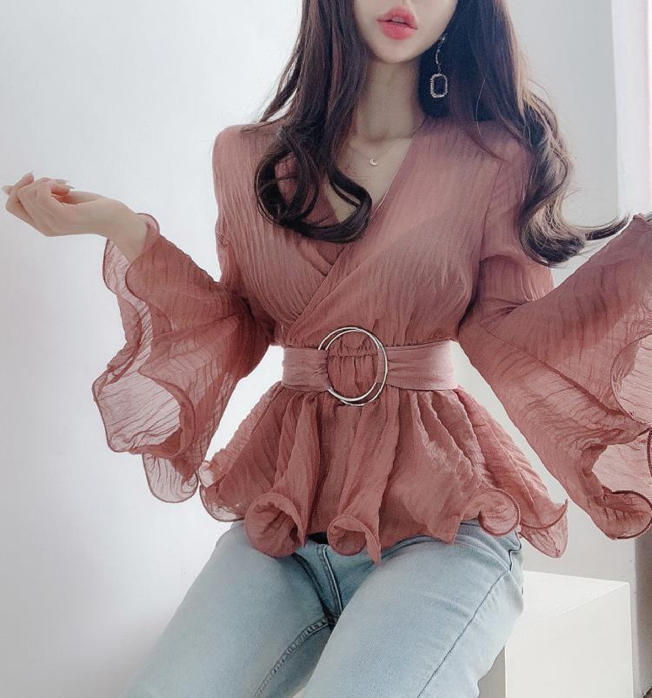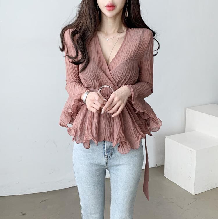 まるで妖精かのような柔らかいVネックシフォンブラウス