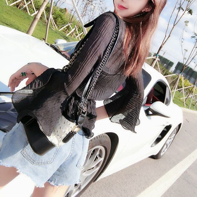 トップス ブラウス 袖あり 長袖 フレアスリーブ Vネック フレア タイト シフォン フリル ポリエステル かわいい 大人可愛い 大人 おしゃれ 大人可愛い 大人女子 ラブリー キュート ガーリー 無地 春 秋 10代 20代 レディース デート お出かけ 女子会 お泊まり サイズ フリーサイズ ホワイト ブラック ピンク