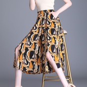 大きめの幾何学模様が華やかなプリントのフレアスカートです。