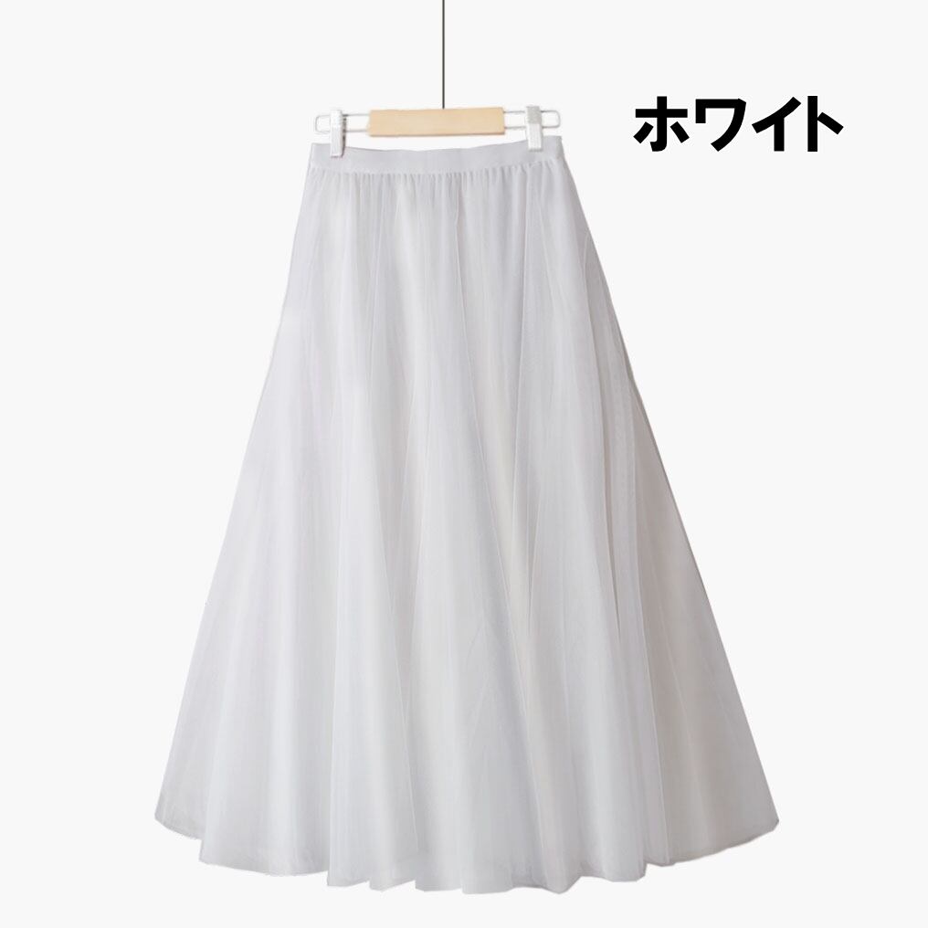 スカート ボトムス ミモレ丈 フレア 無地 レイヤード ニュアンスカラー フェアリー チュール バイカラー 透け感 シアー ウエストゴム ボリューム モード ハイウエスト ワイド ゆったり ストレッチ 韓国 かわいい 可愛い リラックス きれいめ 楽ちん 春 スプリング 冬 ウィンター ストリート カジュアル レディースこなれ感 着回し クラシカル 上品 女性用 高校生 10代 20代 30代 40代 低身長 ゆったり ゆる ブラック ホワイト