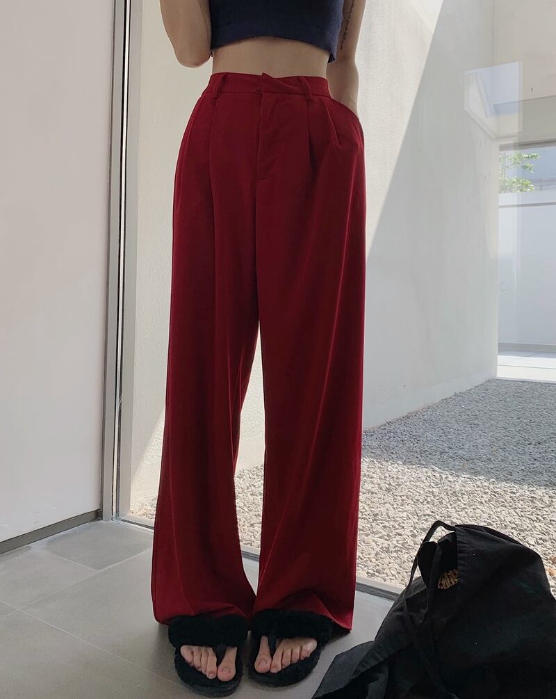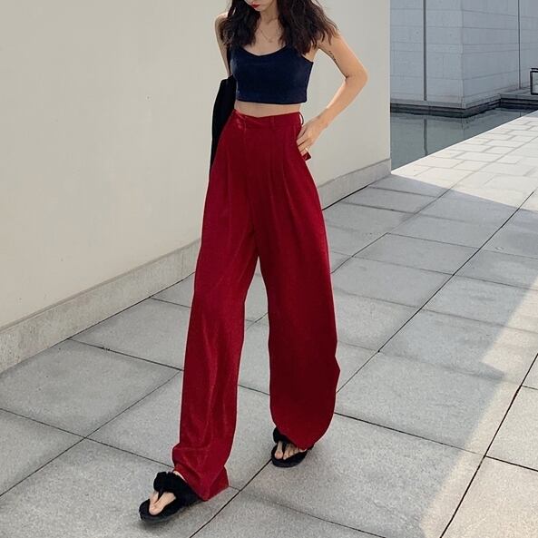 パンツ ボトムス ワイドパンツ ロング丈 ツータック ハイウエスト 脚長 美脚 スタイルアップ かわいい 大人可愛い きれいめ シンプル カジュアル 大人 上品 おしゃれ お洒落 大人可愛い 大人女子 こなれ感 ラフ ラブリー キュート ガーリー ルーズ モード系 通勤 通学 OL 10代 20代 30代 40代 レディース デート お出かけ 着回し 普段使い 重ね着 韓国系 オルチャン ファッション コーデ 楽ちん 体型カバー 激安 送料無料 流行 インスタ映え ワインレッド ブラック