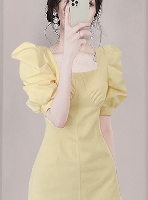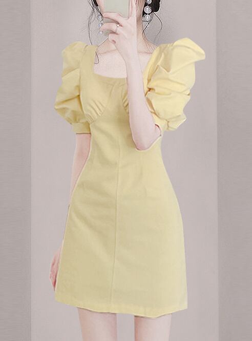 ワンピース ミニ丈 ミニ丈ワンピ ワンピ スクエアネック 半袖 ノーカラー 爽やか パフスリーブ レトロ 着痩せ トレンド デート服 モテ服 脚長効果 美脚 動きやすい 韓国 かわいい 可愛い リラックス きれいめ 楽ちん 春 スプリング 夏 サマー ストリート カジュアル レディース カジュアル ストリート レトロ 大人可愛い オシャレ オシャレ女子 かわいい フェミニン 飽きのこない 女子 通学 通勤 美脚 女性用 高校生 10代 20代 30代 イエロー 黄色