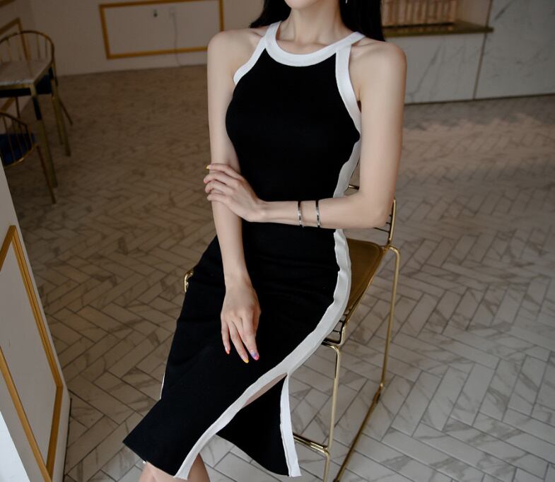 ワンピース ひざ丈 ワンピ ラウンドネック ノースリーブ バイカラー スリット 爽やか パフスリーブ レトロ 着痩せ トレンド デート服 モテ服 脚長効果 美脚 動きやすい 韓国 かわいい 可愛い リラックス きれいめ 楽ちん 春 スプリング 夏 サマー ストリート カジュアル レディース カジュアル ストリート レトロ 大人可愛い オシャレ オシャレ女子 かわいい フェミニン 飽きのこない 女子 通学 通勤 美脚 10代 20代 30代 ブラック 黒 ホワイト 白 ベージュ ピンク グレー レッド