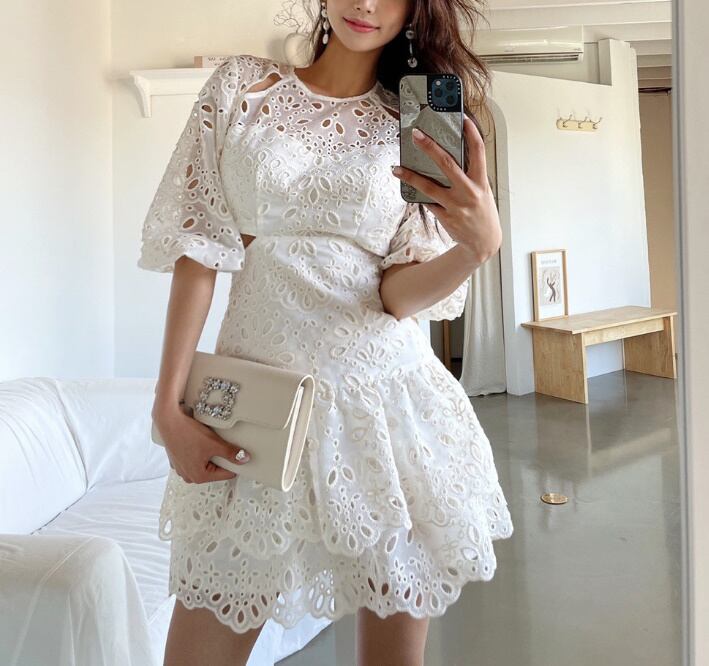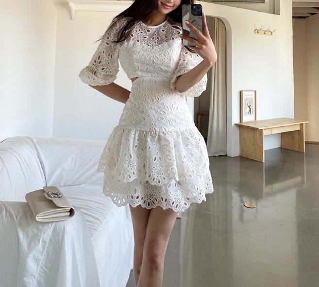 ワンピース ミニ丈ワンピ レース 肌見せ ノーカラー ワンピ 爽やか 爽やか レトロ 着痩せ トレンド デート服 モテ服 脚長効果 美脚 動きやすい 韓国 かわいい 可愛い リラックス きれいめ 楽ちん 春 スプリング 夏 サマー ストリート カジュアル レディース カジュアル ストリート レトロ 大人可愛い オシャレ オシャレ女子 かわいい フェミニン 飽きのこない 女子 通学 通勤 オフィス セクシー 美脚 10代 20代 30代 ホワイト 白