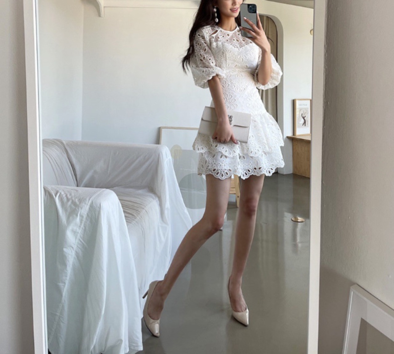 レースデザインが可愛いミニ丈ワンピースです。