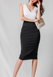 ワンピース ひざ丈ワンピ Vネック バイカラー ひざ丈 ノースリーブ 爽やか 爽やか レトロ 着痩せ トレンド デート服 モテ服 脚長効果 美脚 動きやすい 韓国 かわいい 可愛い リラックス きれいめ 楽ちん 春 スプリング 夏 サマー ストリート カジュアル レディース カジュアル ストリート レトロ 大人可愛い オシャレ オシャレ女子 かわいい フェミニン 飽きのこない 女子 通学 通勤 オフィス セクシー 美脚 10代 20代 30代 シック モノトーン ブラック 黒