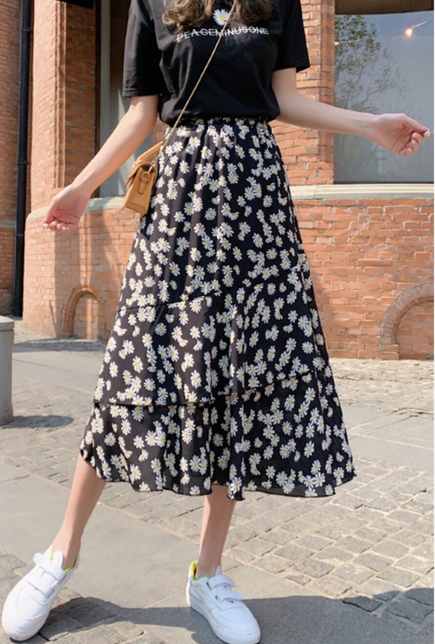 ボトムス ボトム おすすめ おしゃれ お洒落 激安 安い 送料無料 プチプラ ロング スカート フレア スカート ハイ ウエスト ミモレ 丈 アンクル丈 ゆったり 花柄 プリント ウエスト ポリエステル 動きやすい 韓国 流行り かわいい 可愛い きれいめ 楽ちん 春 スプリング 夏 サマー ストリート カジュアル レディース 女性用 30代 20代 S 白 ホワイト 黒 ブラック 大人カラー モノトーン
