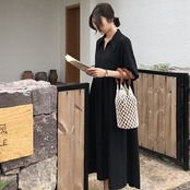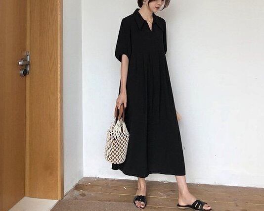 ワンピース ロング丈ワンピ とろみ感 シャツワンピ 袖あり 華やか 爽やか レトロ 着痩せ トレンド デート服 モテ服 脚長効果 美脚 動きやすい 韓国 かわいい 可愛い リラックス きれいめ 楽ちん 春 スプリング 秋 オータム ストリート カジュアル レディース カジュアル ストリート レトロ 大人可愛い オシャレ オシャレ女子 かわいい フェミニン 飽きのこない 女子 通学 セクシー 美脚 パーティー 10代 20代 30代 ブラック 黒