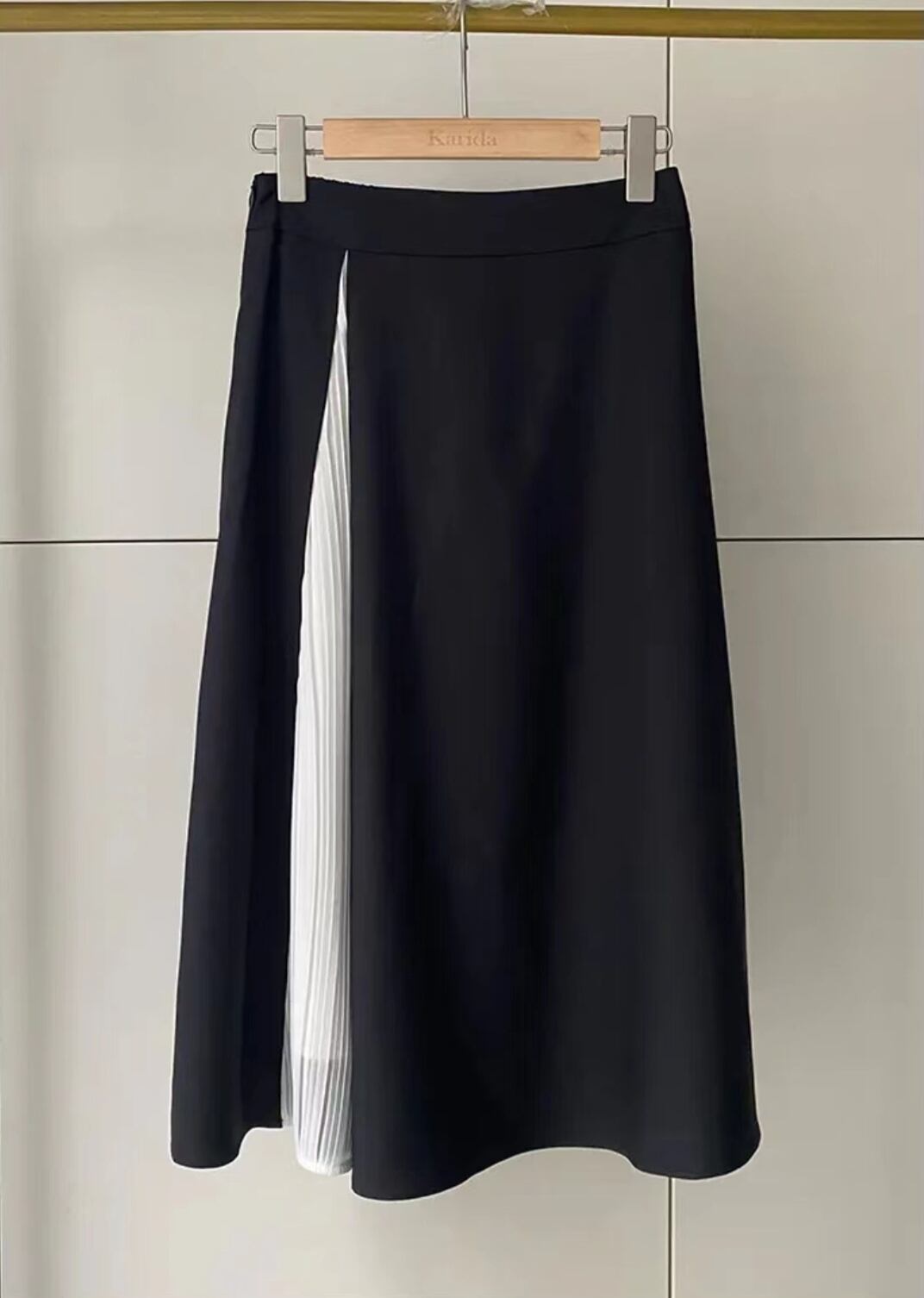 繊細なプリーツ切り替えをチラ見せしたスカートです。