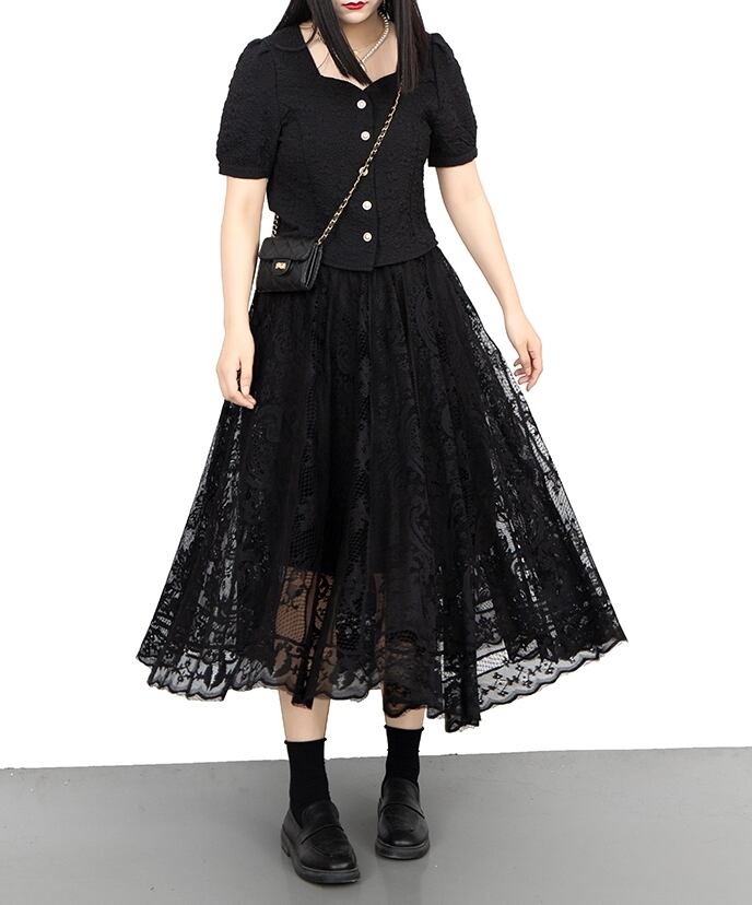 スカート ボトムス ミモレ丈 フレア チュール ドット 花柄 メッシュ 透け感 シアー シースルー フェアリー モード ハイウエスト 裏地付き ワイド ゆったり ストレッチ 韓国 かわいい 可愛い リラックス きれいめ 楽ちん 春 スプリング 冬 ウィンター ストリート カジュアル レディースこなれ感 着回し クラシカル 上品 女性用 高校生 30代 40代 低身長 ゆったり ゆる モノトーン ブラック ホワイト