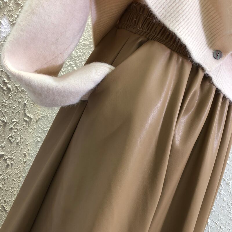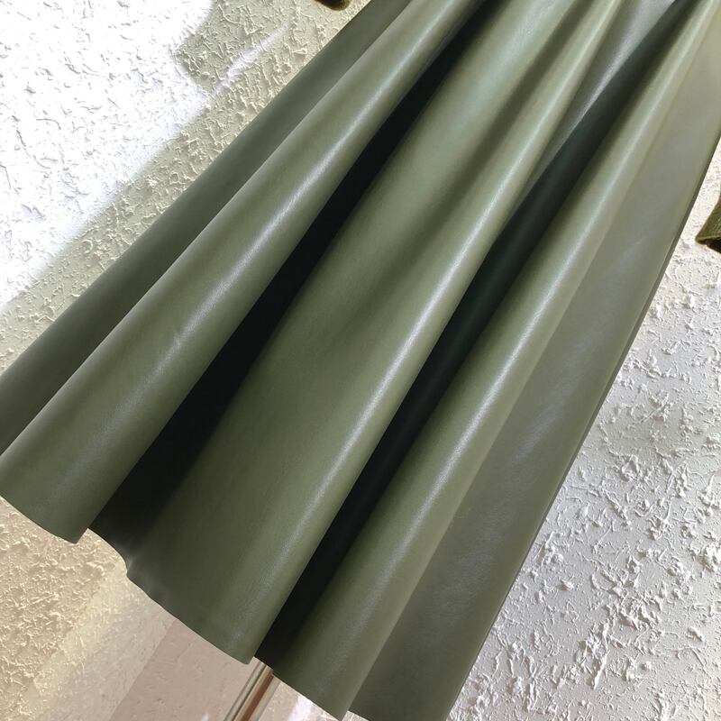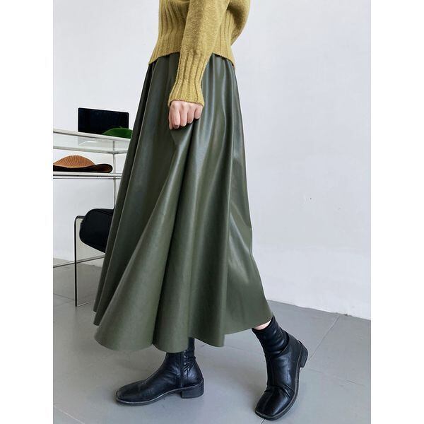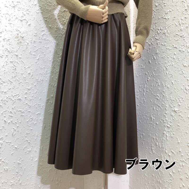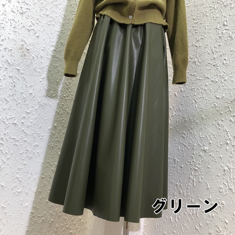 スカート ボトムス フェイクレザー エコレザー ミモレ丈 フレア カーキ 裏地付き ハイウエスト クラシカル シンプル 大人女子 カジュアル セクシー スポーティー お洒落 おしゃれ オシャレ 可愛い かわいい レディース 送料無料 春 夏 スプリング サマー 海 ビーチ リゾート プール フィット スリム 細身 背中あき 肌見せ 露出 20代 デート ランチ 買い物 ショッピング 観光 旅行 ハイウエスト 脚長効果 ウエストマーク ウエスト アプリコット キャラメル ブラウン グリーン