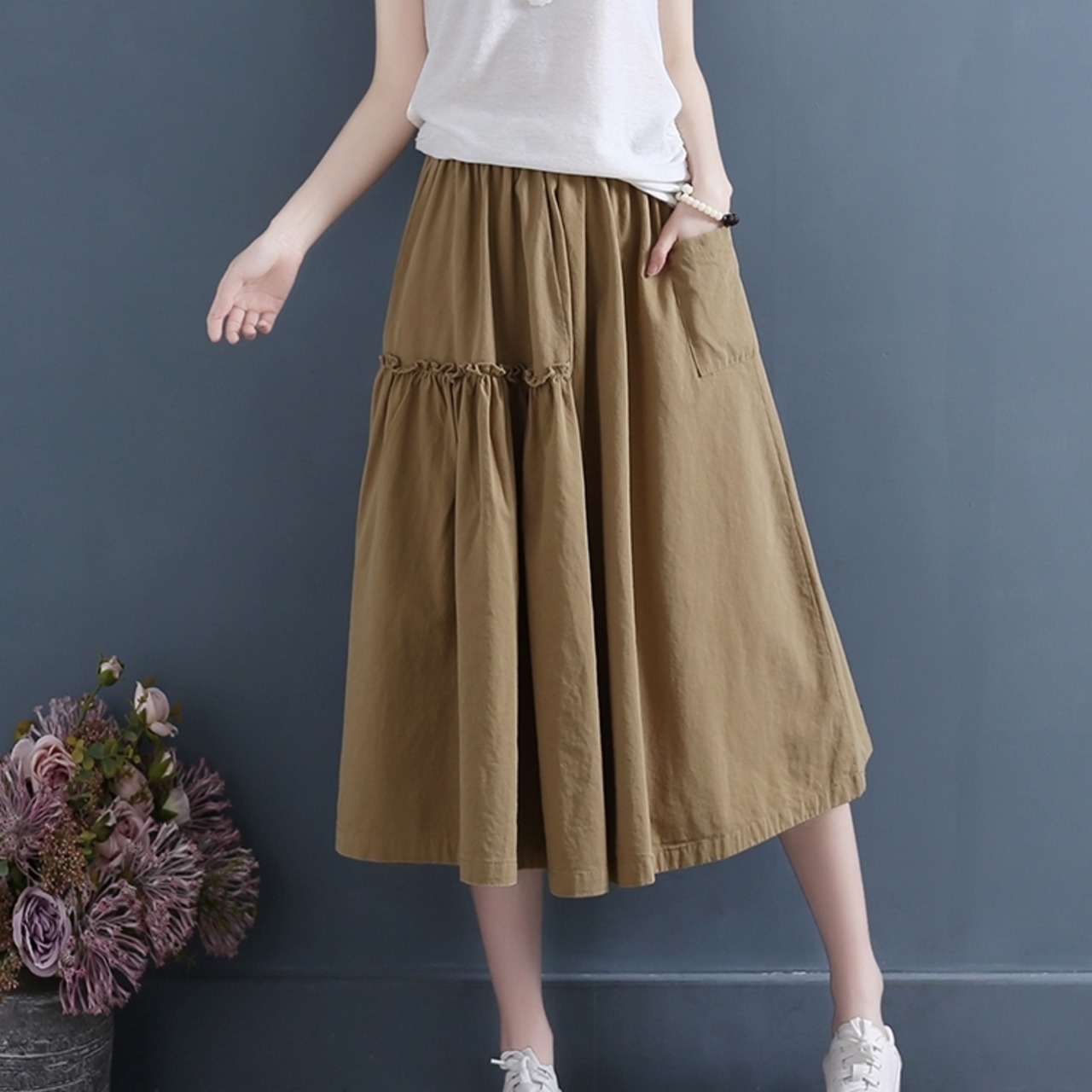 スカート ボトムス ミモレ丈 フレア スカート ギャザーフリル ポケット アシンメトリー シャーリング 切り替え ラップスカート ボリューム モード ハイウエスト ワイド ゆったり ストレッチ 韓国 かわいい 可愛い リラックス きれいめ 楽ちん 春 スプリング 冬 ウィンター ストリート カジュアル レディースこなれ感 着回し クラシカル 上品 女性用 高校生 30代 40代 低身長 ゆったり ゆる 黒 ブラック ホワイト グレー ブラック