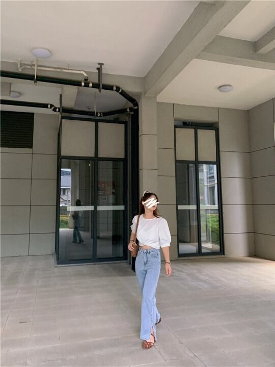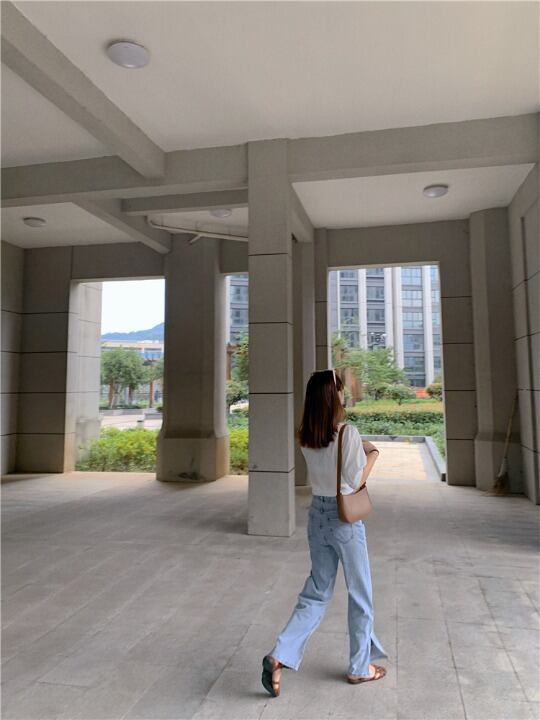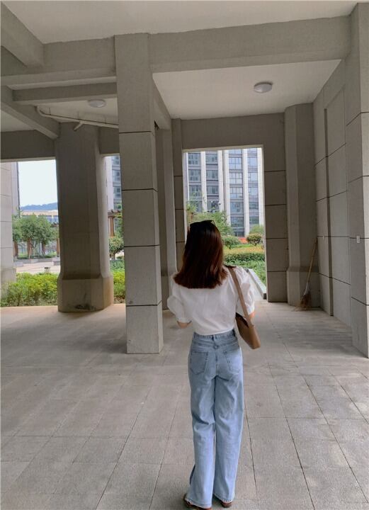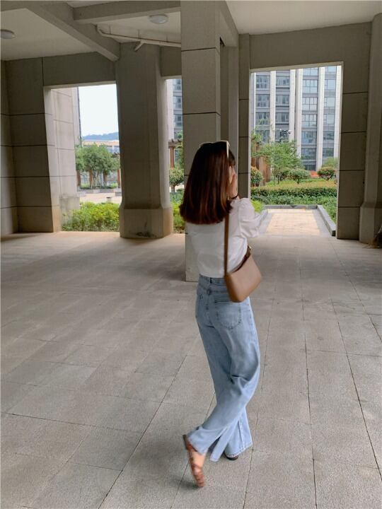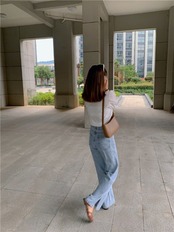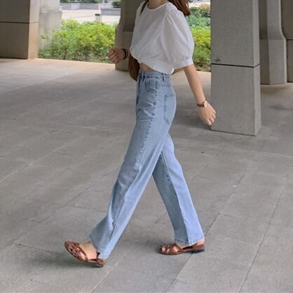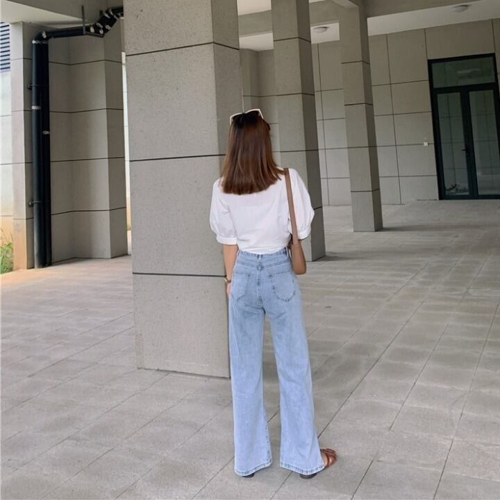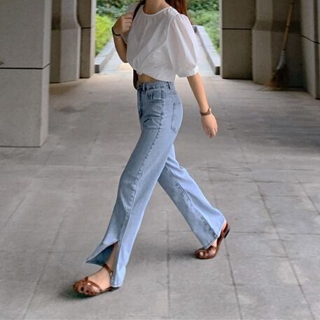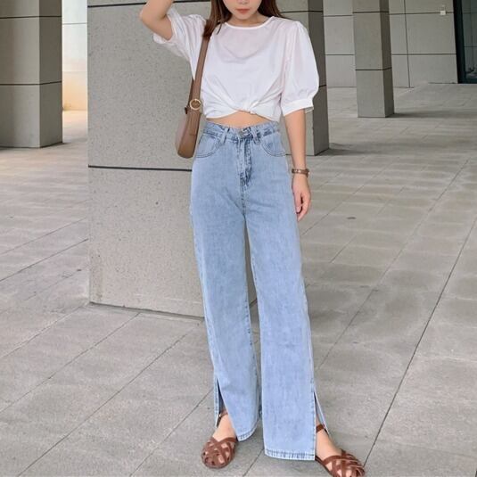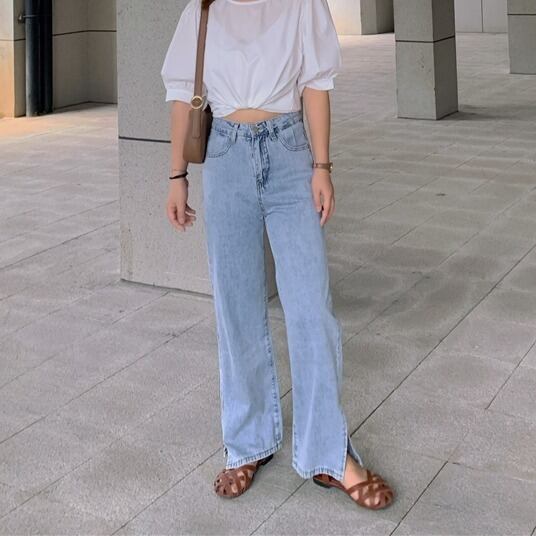 ヴィンテージ風な淡いライトブルーがこなれ感がありハイウエストがスタイルアップを叶えます。