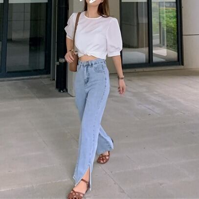ジーンズ ボトムス 長ズボン ワイドジーパン スリットタック ハイウエスト ウォッシュ加工 10分丈 9分丈 スキニー スリット ストレッチ 美脚 動きやすい 韓国 かわいい 可愛い リラックス きれいめ 楽ちん 春 スプリング 夏 サマー 冬 ウィンター ストリート カジュアル レディース カジュアル ストリート レトロ 美脚 女性用 高校生 30代 黒 ブラック 紺 ネイビー 水色 スカイブルー