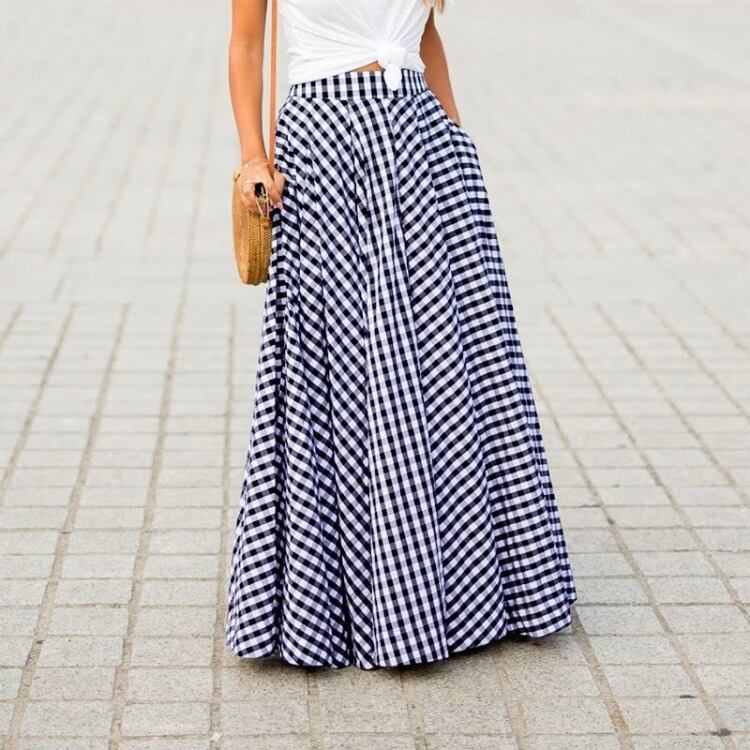 ビッグシルエットのギンガムチェック柄マキシスカート。