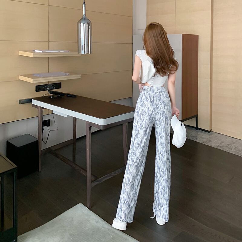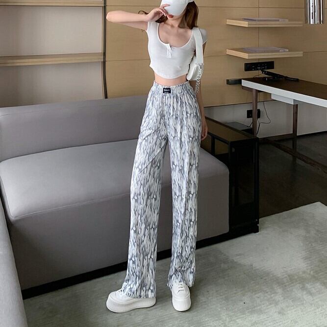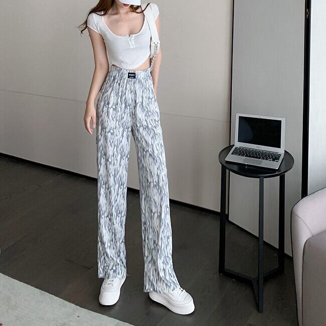 ハイウエスト ロング丈 パンツ ボトムス ワイドパンツ 薄手 タイダイ パターン柄 ホワイト タグ かわいい 大人可愛い きれいめ シンプル カジュアル 大人 上品 おしゃれ お洒落 かっこいい 大人可愛い 大人女子 こなれ感 ラフ ラブリー キュート ガーリー ルーズ モード系 10代 20代 30代 40代 レディース デート お出かけ 着回し 普段使い 重ね着 韓国系 オルチャン ファッション コーデ 楽ちん 体系カバー 激安 送料無料 流行 インスタ映え ブルー 青 ブラック 黒