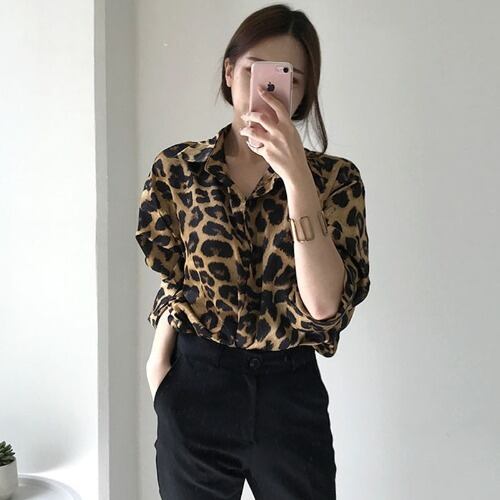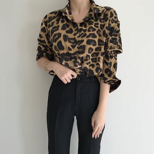 ブラウス 長袖 ロング 柄 ポリエステル 韓国 かっこいい カジュアル 大人 上品 きれいめ サマー 夏 ストリート レディース 女性用 20代 30代 S M L XL 2XL ゆったり ゆる 大人カラー ヒョウ柄 アニマル ボリューム