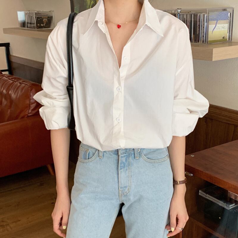 トップス ブラウス 白シャツ 袖あり 長袖 バックVネック パフスリーブ かわいい 大人可愛い きれいめ シンプル カジュアル 大人 おしゃれ お洒落 無地 春 夏 秋 10代 20代 30代 40代 レディース オフィス OL 通勤 学生 通学 お出かけ お泊まり 休日 着回し 普段使い コーデ ホワイト