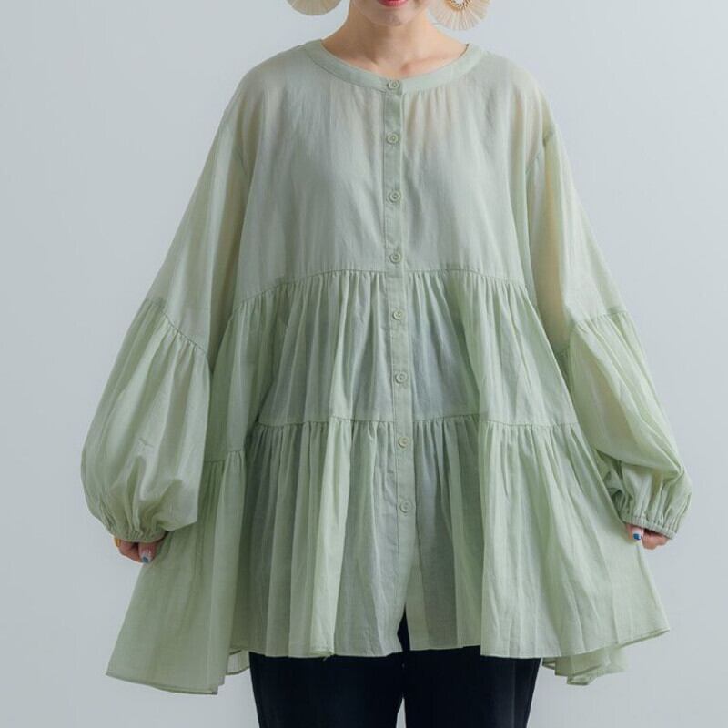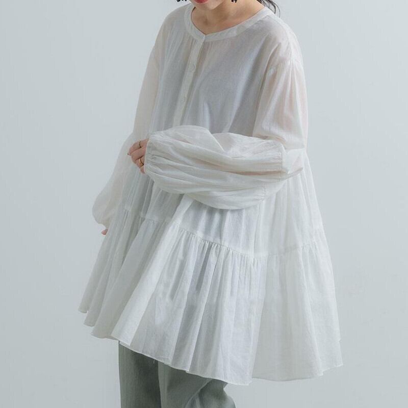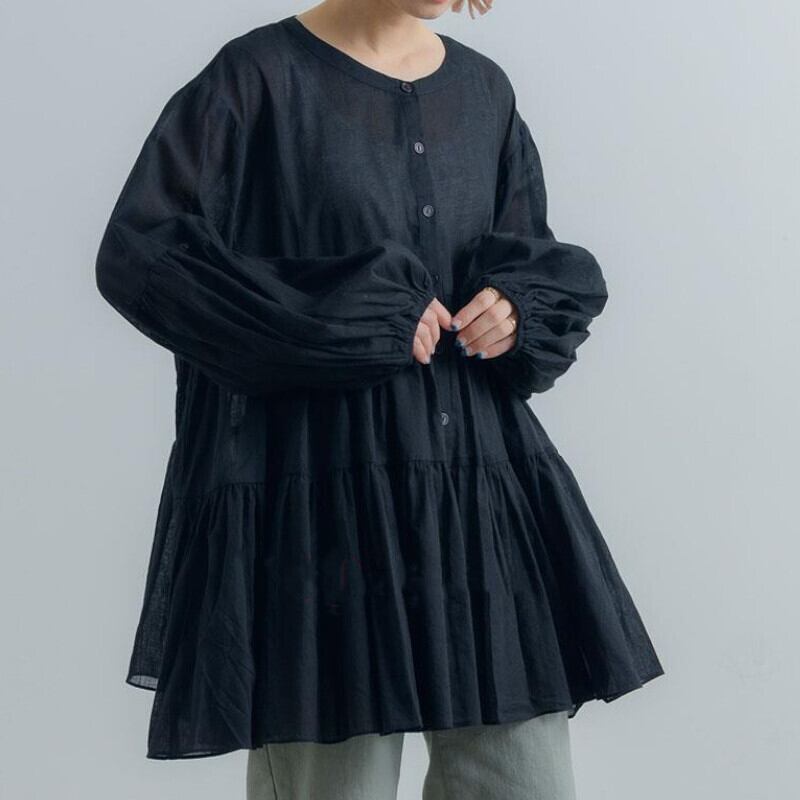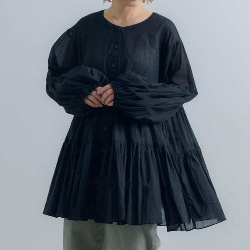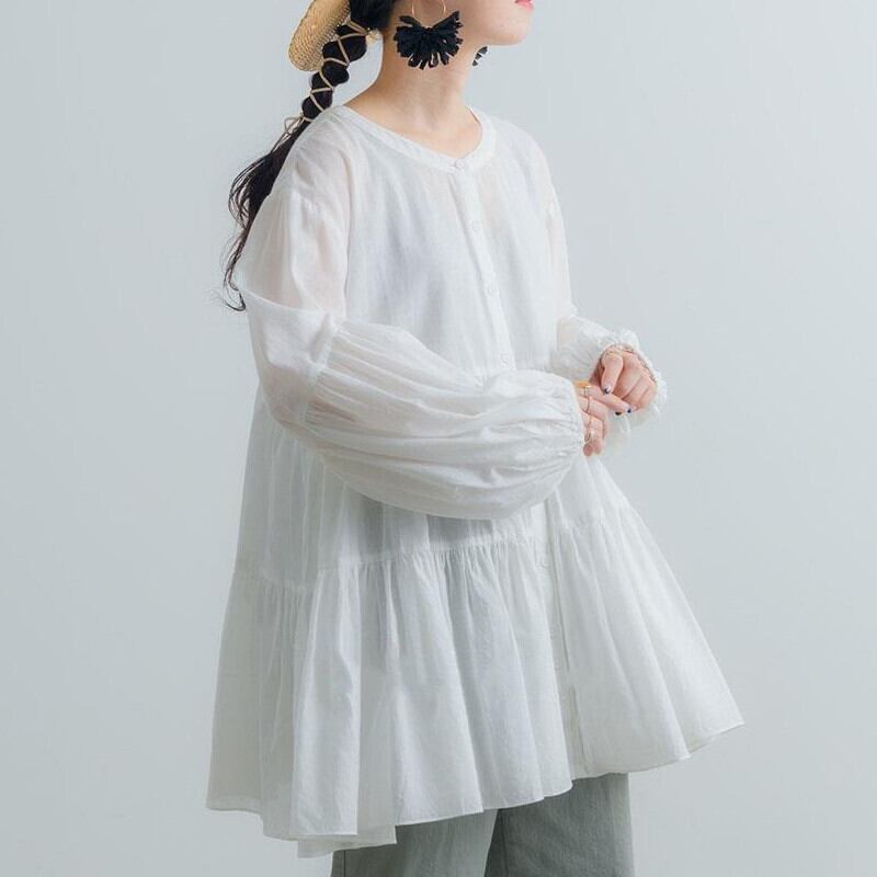 トップス ブラウス チュニック 袖あり 長袖 ランタンスリーブ ラウンドネック Aライン かわいい 大人可愛い きれいめ シンプル カジュアル 大人 上品 おしゃれ レトロ キュート とろみ感 無地 春 夏 秋 10代 20代 30代 40代 レディース オフィス OL 通勤 デート お出かけ 女子会 休日 リゾート 旅行 着回し 普段使い 韓国系 オルチャン ファッション コーデ スタイル モテ 体型カバー 定番 トレンド ワンサイズ 白 ホワイト 黒 ブラック カーキ