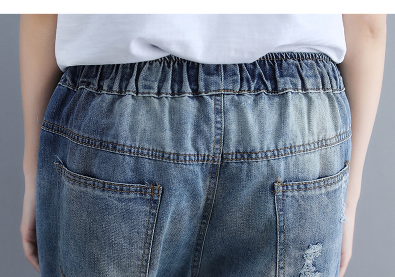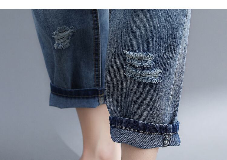 全体に施された程よいダメージ加工がおしゃれな9分丈デニムパンツです。