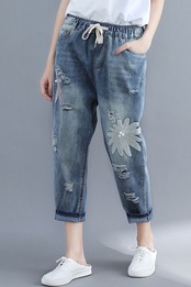 ボトムスデニム 花柄 フラワー パンツ ゆったり クロップドパンツ ダメージ レトロ 9分丈 刺繍 パール風 ジーンズ 加工 かわいい 大人可愛い きれいめ シンプル カジュアル 大人 上品 おしゃれ お洒落 かっこいい 大人可愛い 大人女子 こなれ感 ラフ ラブリー キュート ガーリー ルーズ モード系 10代 20代 30代 40代 レディース デート お出かけ 着回し 普段使い 重ね着 韓国系 オルチャン ファッション コーデ 楽ちん 体系カバー 激安 送料無料 流行 インスタ映え ブルー 青