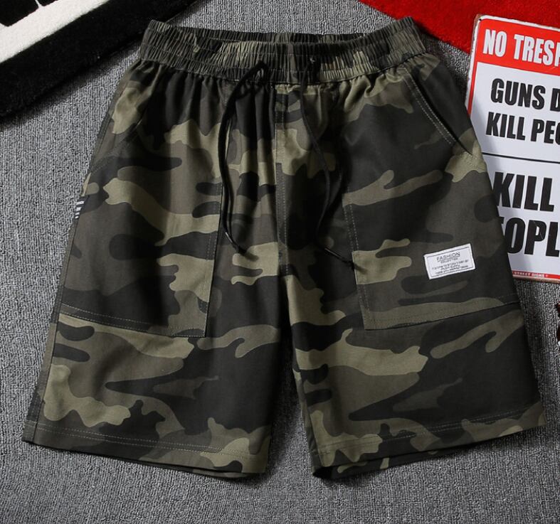 無地や迷彩柄の生地にシンプルなワッペンのワンポイントが入ったスポーティーな膝上丈のハーフパンツです。