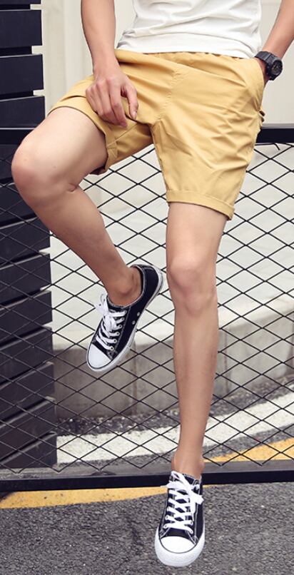 無地でシンプルな生地、シンプルな形のハーフパンツです。