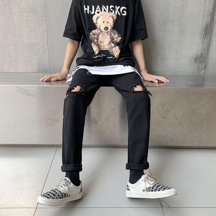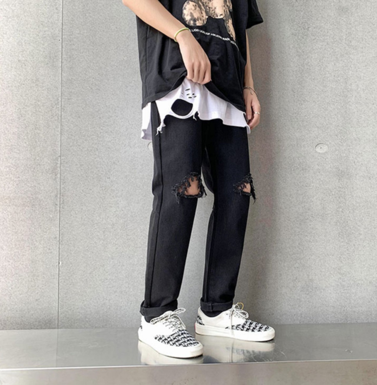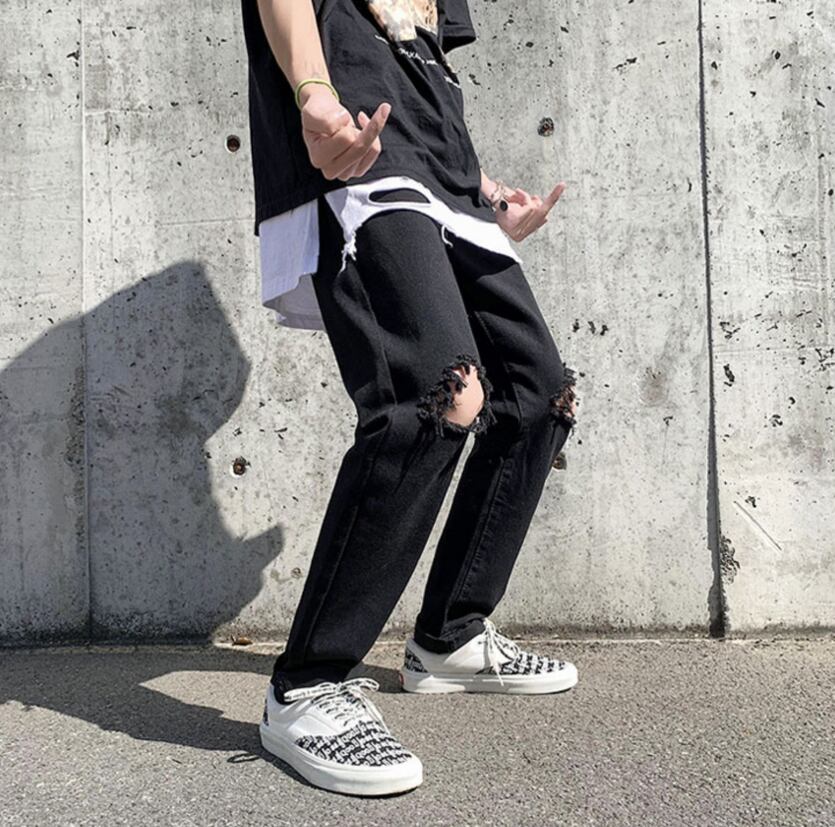 ボトムス パンツ ズボン ストレートパンツ ジーンズ、デニム Gパン 9分丈 アンクル丈 カラーデニム カジュアル おしゃれ お洒落 かっこいい ワイルド ラフ 個性的 セクシー 無地 春 夏 秋 冬 オールシーズン シーズンレス 10代 20代 30代 男女兼用 ユニセックス レディース 女性用 メンズ 男性用 キッズ 女の子 男の子 学生 お出かけ 激安 安い 送料無料 ダメージ 穴あき 3XL M L XL 2XL 黒 ブラック pa0145