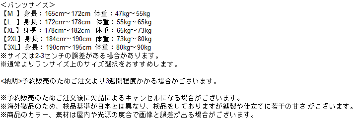 【3XL】身長:190cm〜195cm 体重:80kg〜90kg