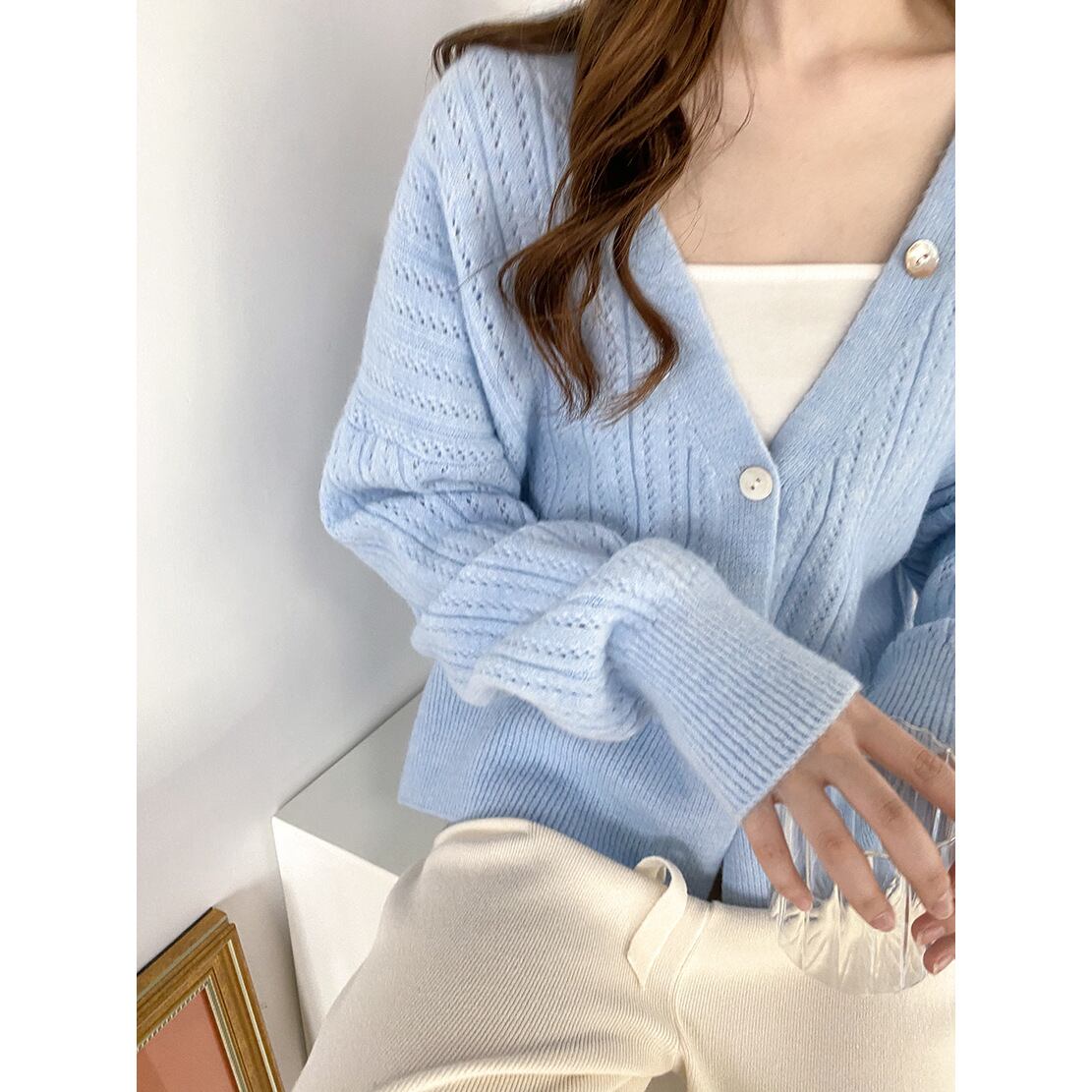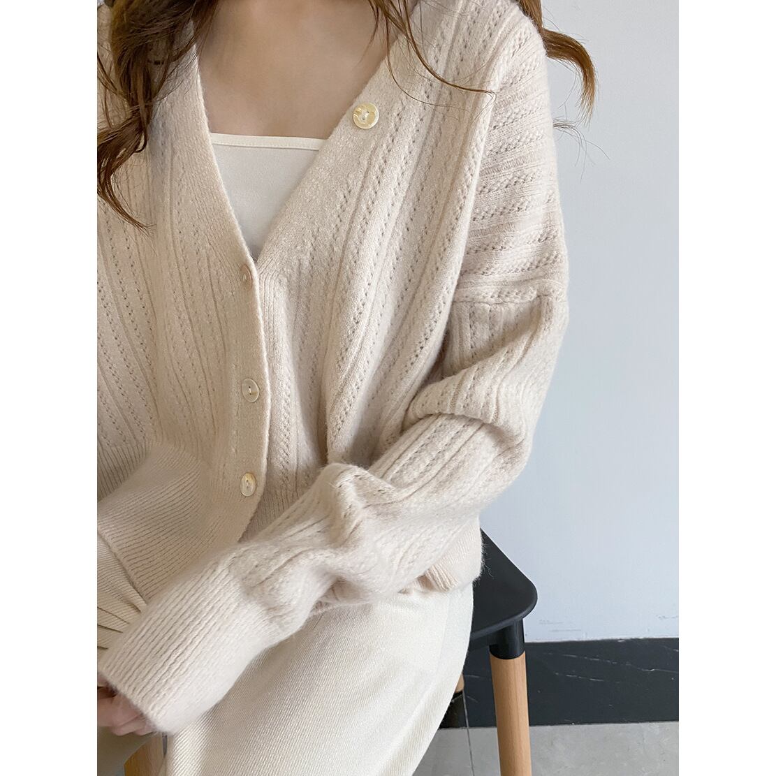 ロングスリーブが愛らしい大人のニットカーディガン。