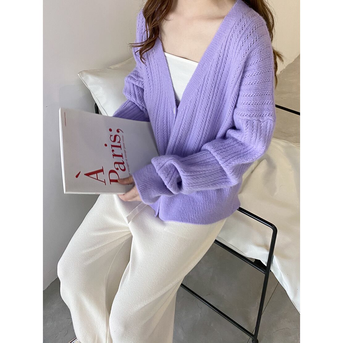 アウター カーディガン 袖あり 長袖 Vネック 前開き ニット かわいい 大人可愛い きれいめ おしゃれ 無地 春 秋 冬 10代 20代 30代 40代 レディース ママ オフィス ビジネス OL 通勤 学生 通学 デート お出かけ 女子会 お泊まり 休日 着回し 普段使い グリーン パープル 水色 アプリコット
