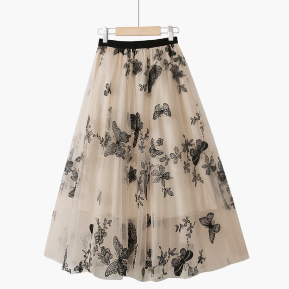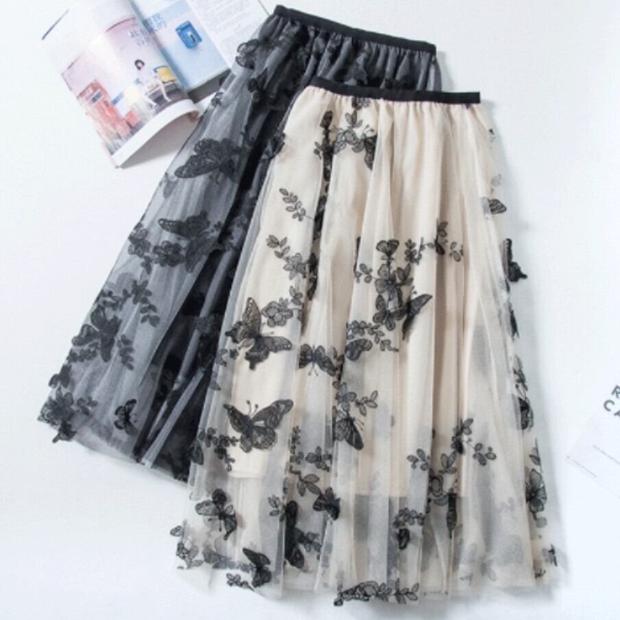 ボトムス フレア スカート 刺繍 バタフライ チュールスカート ハイウエスト 蝶 Aライン ミディ丈 花柄 かわいい 大人可愛い きれいめ シンプル カジュアル 大人 上品 おしゃれ お洒落 かっこいい 大人可愛い 大人女子 こなれ感 ラフ ラブリー キュート ガーリー ルーズ モード系 10代 20代 30代 40代 レディース デート お出かけ 着回し 普段使い 重ね着 韓国系 オルチャン ファッション コーデ 楽ちん 体系カバー 激安 送料無料 流行 インスタ映え ホワイト 白 ブラック 黒 ピンク