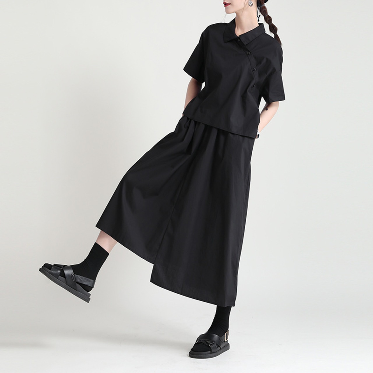 セットアップで着こなしているように見えるオシャレなワンピです。
