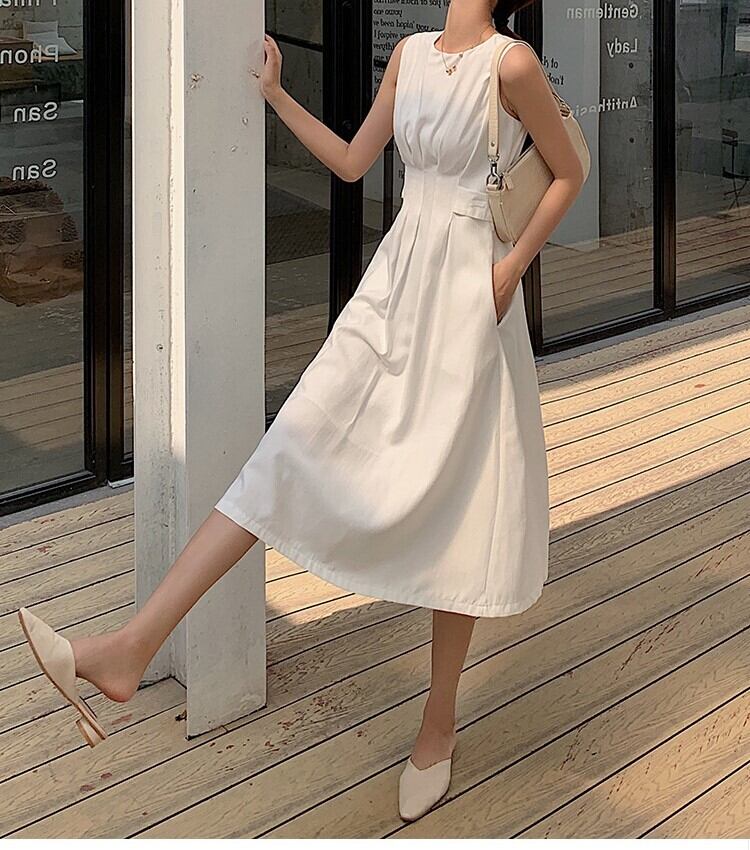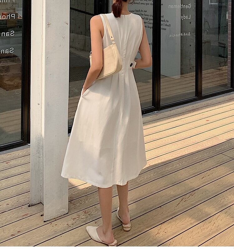 ワンピース 上着 人気 おすすめ おしゃれ お洒落 プチプラ ノースリーブ ラウンドネック 丸首 無地 コットン 綿 ドライ 速乾 クールビズ 着痩せ 体型カバー 可愛い かわいい 韓国 シンプル カジュアル きれいめ 高品質 大人 上品 春 スプリング サマー 夏 レディース 女性用 20代 30代 40代 50代 S M L XL 2XL 大きめ ゆったり ゆる 白 ホワイト 黒 ブラック 春カラー
