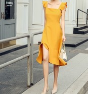 フリルショルダーデザインながら、大人っぽく着用できるワンピースです。