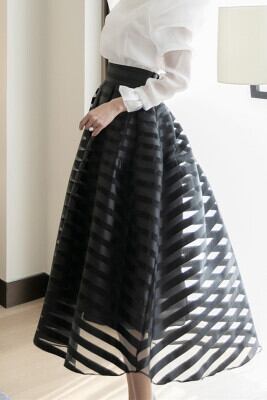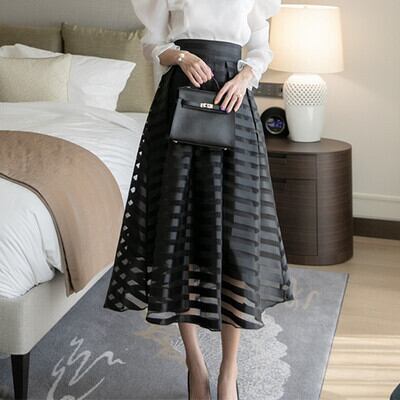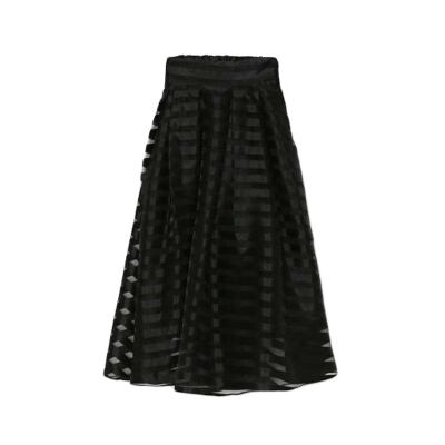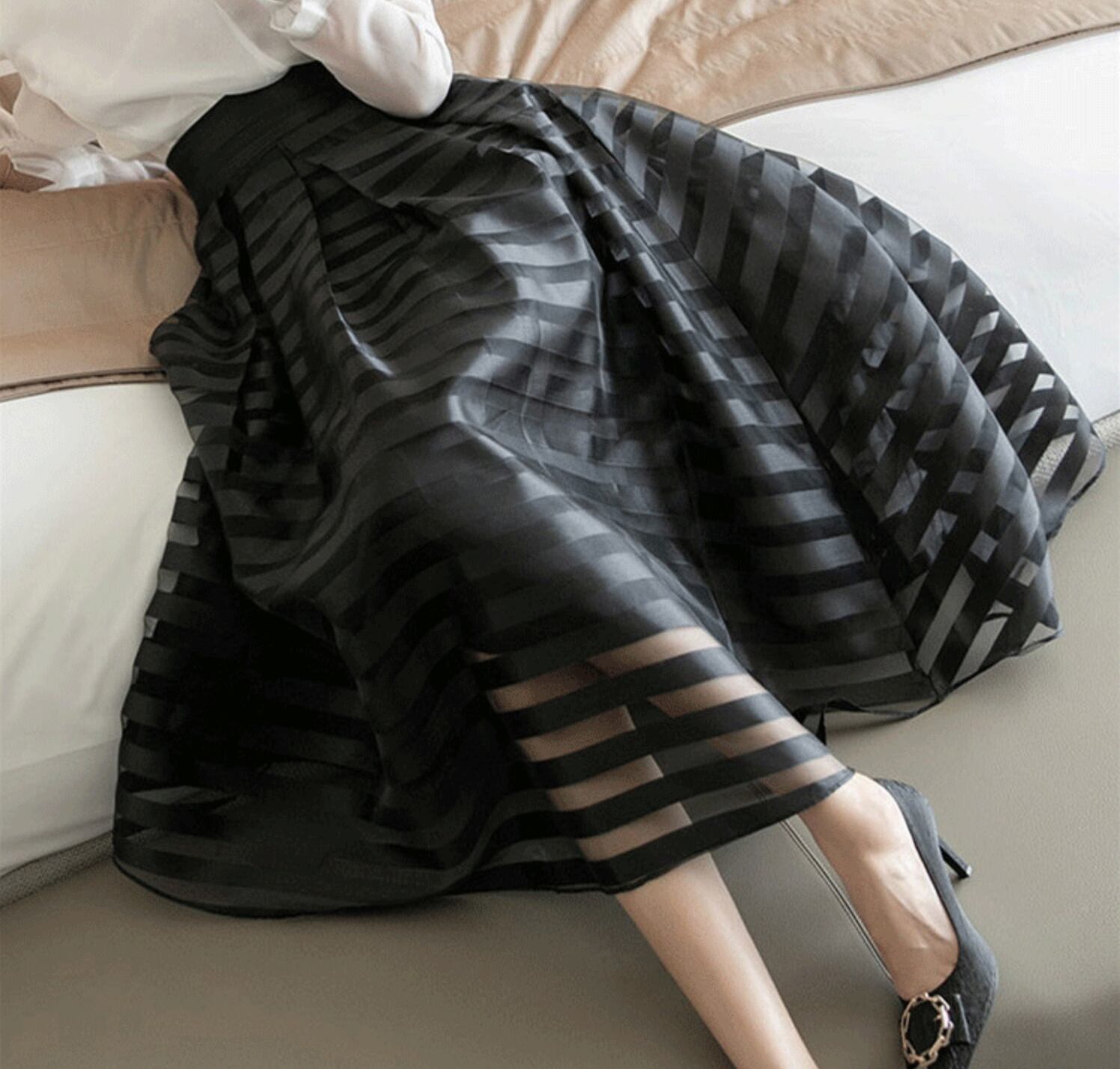 ボトムス ボトム おすすめ おしゃれ お洒落 激安 安い 送料無料 プチプラ スカート ロング スカート フレア スカート ボリューム スカート ハイ ウエスト Aライン ミモレ 丈 ストライプ シースルー ポリエステル 美脚 韓国 ヒップアップ 流行り かわいい 可愛い きれいめ 春 スプリング 夏 サマー オフィス カジュアル 結婚式 レディース 女性用 30代 20代 S M L XL 2XL 黒 ブラック 大人カラー モノトーン