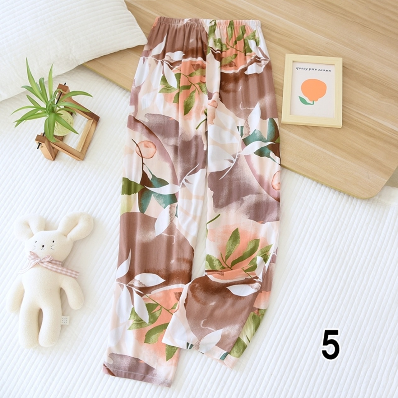 カラフルなボタニカルパターンがにぎやかで可愛いアイテム。