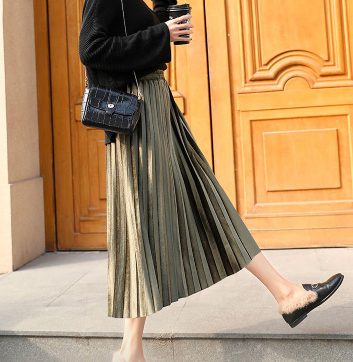 ボトムス ボトム おすすめ おしゃれ お洒落 激安 安い 送料無料 プチプラ スカート プリーツ スカート ロング スカート ハイ ウエスト Aライン マキシ丈 アンクル丈 ストレッチ ウエスト ゴム 動きやすい 韓国 ヒップアップ 流行り かわいい 可愛い きれいめ 楽ちん 冬 ウィンター ストリート オフィス カジュアル 秋 レディース 女性用 30代 20代 S M L XL 2XL 3XL 大きいサイズ 黒 ブラック 灰色 グレー 緑 グリーン 桃色 ピンク 大人カラー 秋カラー