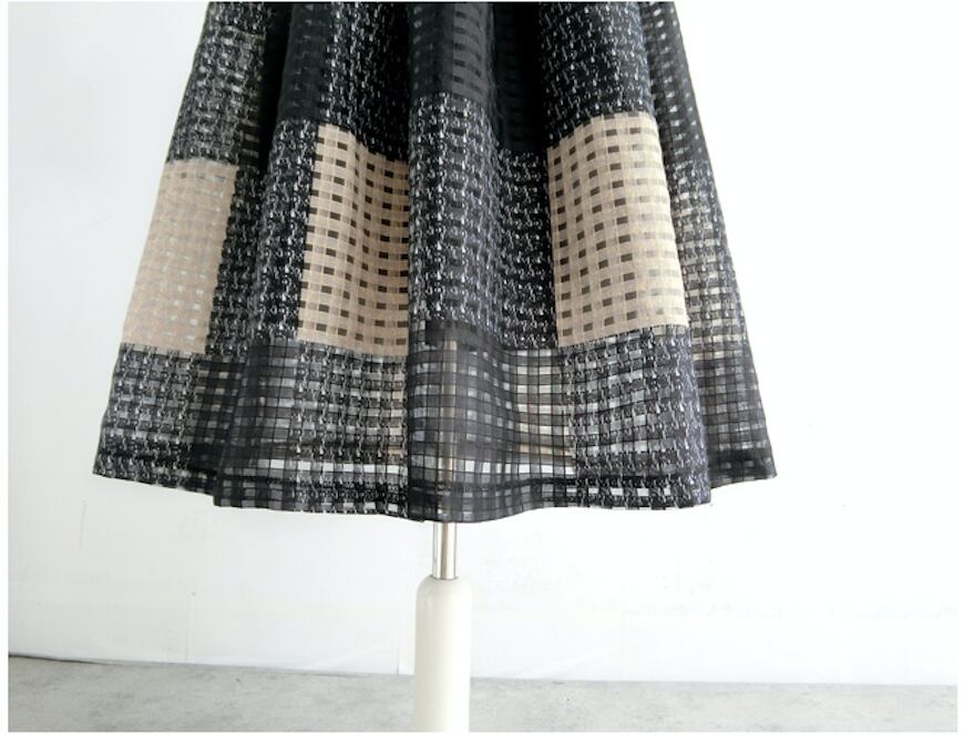 透け感とチェック柄が可愛いフォーマルなシーンに大活用する一枚。