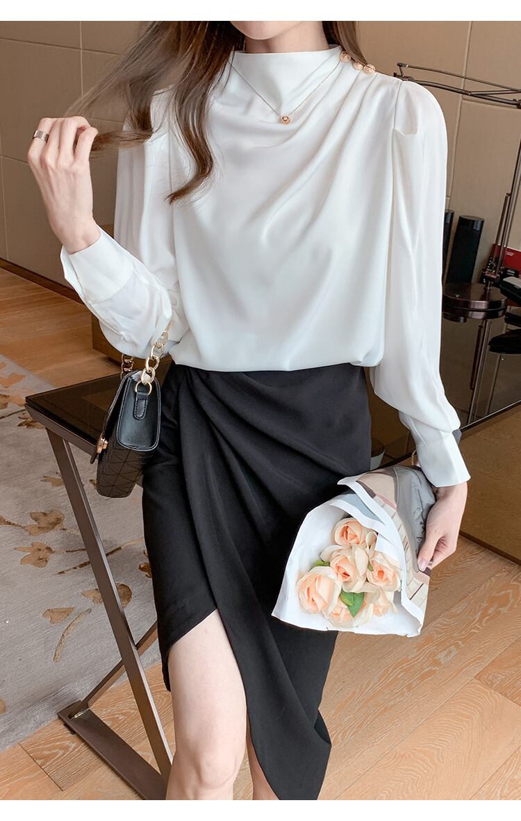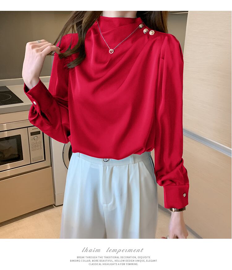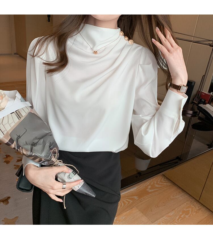 トップス 袖あり 長袖 タートルネック サテン かわいい 大人可愛い きれいめ シンプル 大人 上品 おしゃれ 大人女子 モード系 存在感 フォーマル 無地 春 秋 10代 20代 30代 レディース オフィス ビジネス OL 通勤 S M L XL 2XL 小さいサイズ 大きいサイズ ホワイト ブラック レッド ブルー