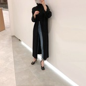 大きくスリットが入ったロング丈ニットトップス。