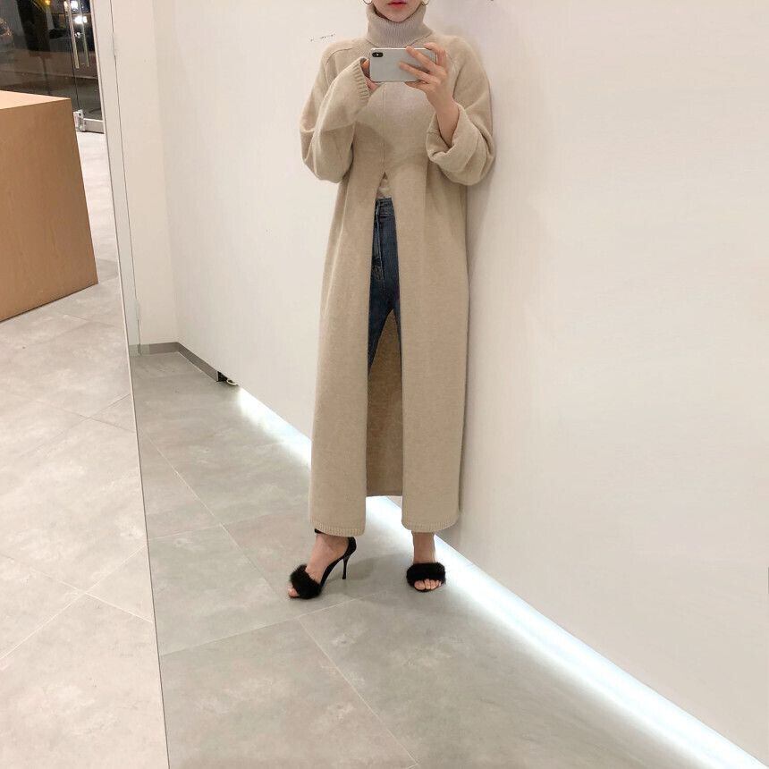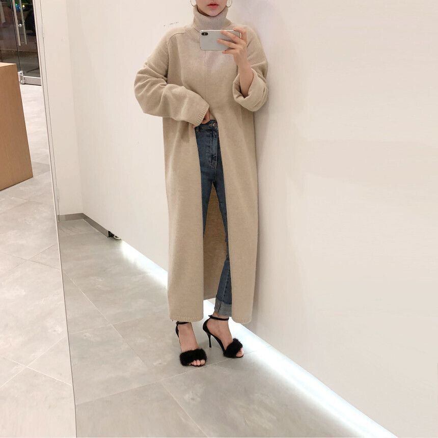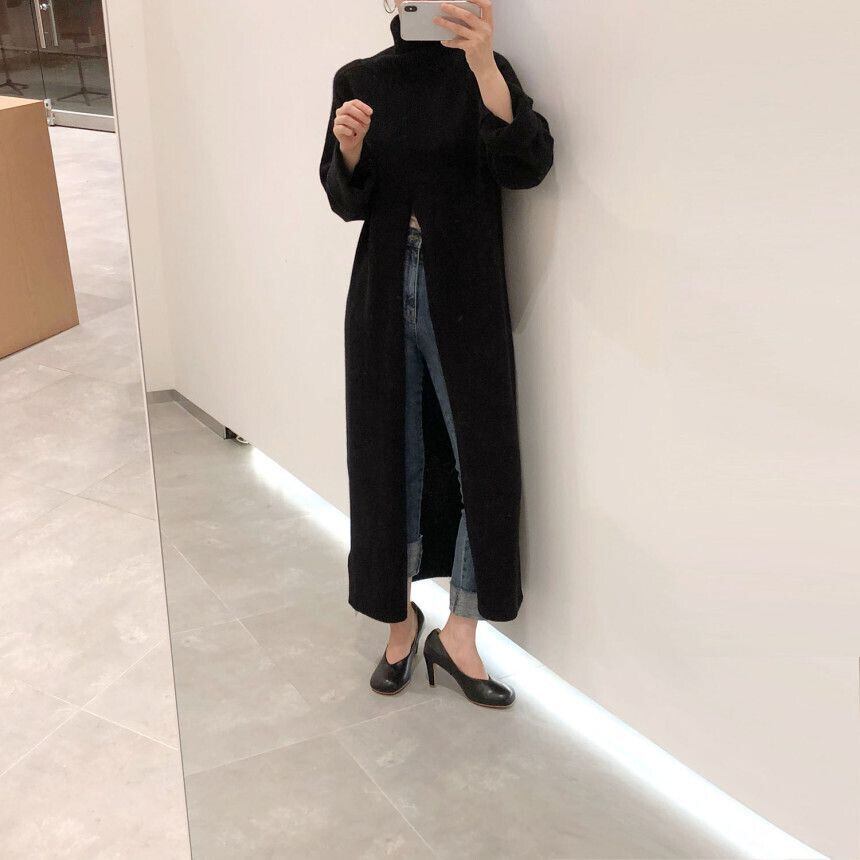 トップス ニット セーター ロングセーター 袖あり 長袖 ハイネック スリット きれいめ シンプル カジュアル 大人 上品 おしゃれ レトロ 大人女子 エレガント 無地 秋 冬 10代 20代 30代 40代 レディース オフィス OL 通勤 デート お出かけ 女子会 着回し 韓国系 オルチャン ファッション コーデ スタイル モテ 体型カバー トレンド ワンサイズ 黒 ブラック ベージュ