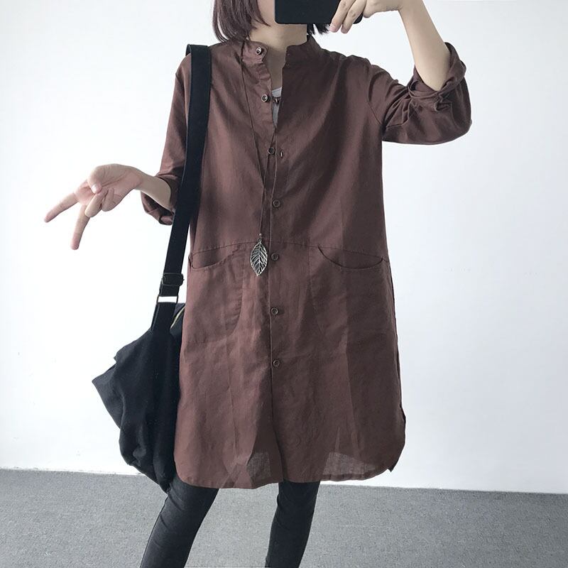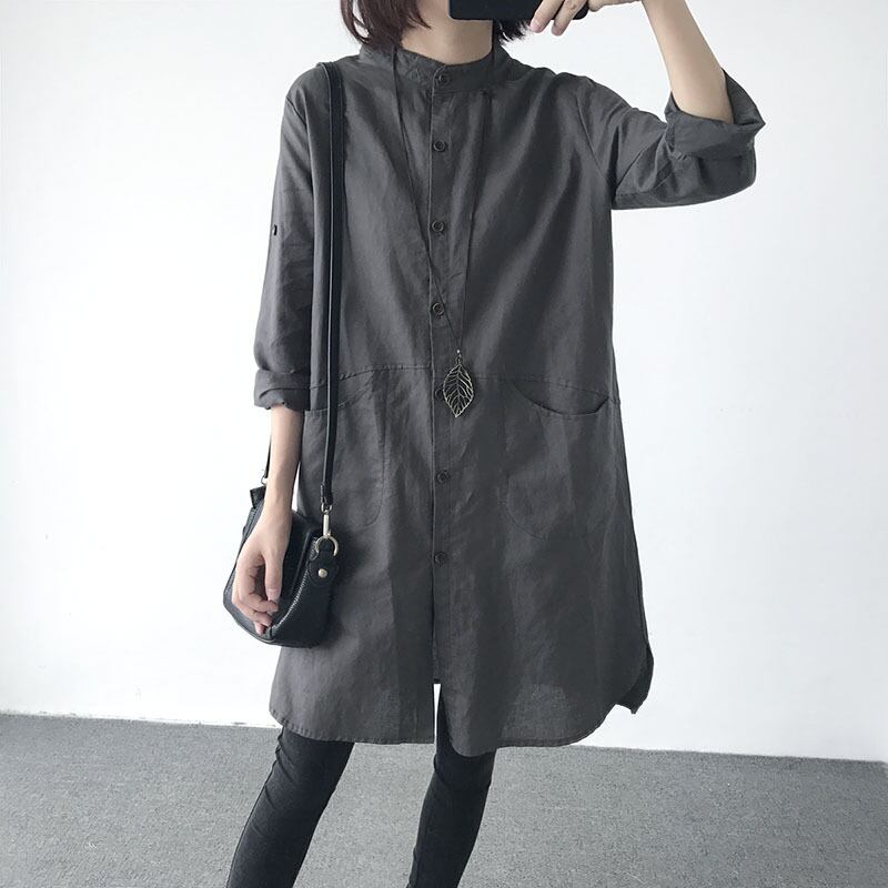 トップス シャツ ロング丈 袖あり 長袖 シンプル カジュアル 大人 上品 おしゃれ レトロ 大人女子 ラフ エレガント 無地 秋 冬 10代 20代 30代 40代 レディース オフィス OL 通勤 デート お出かけ 女子会 着回し 韓国系 オルチャン ファッション コーデ スタイル モテ 体型カバー トレンド L XL 黒 ブラック 茶色 ブラウン 灰色 グレー ベージュ