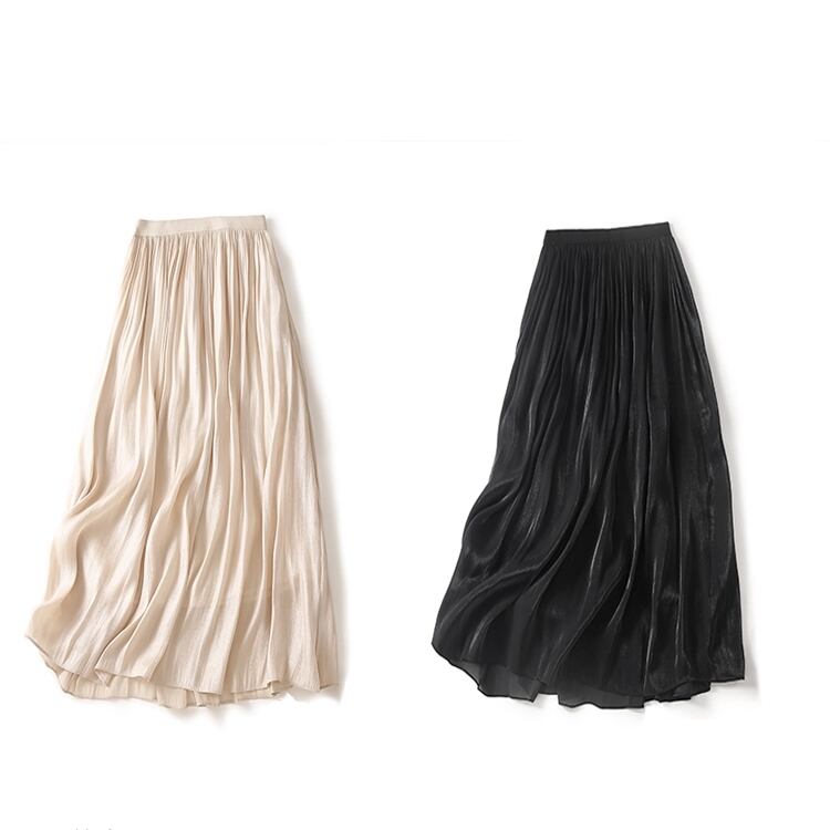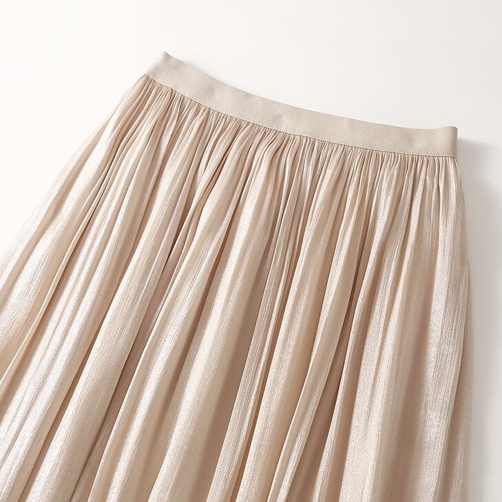 柔らかな透け感とツヤ感がフェミニンなフレアスカートです。