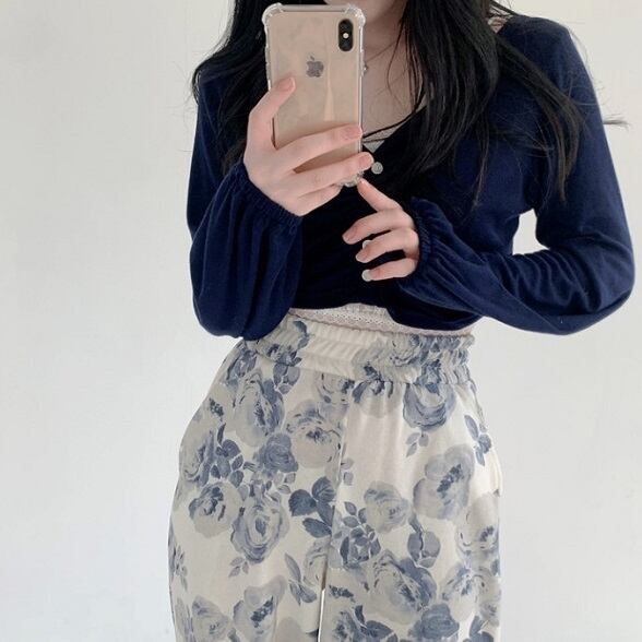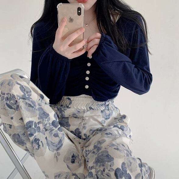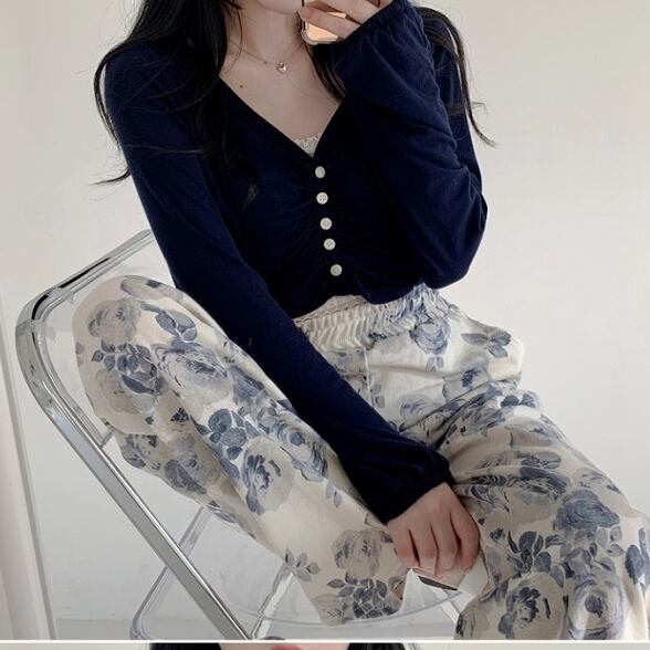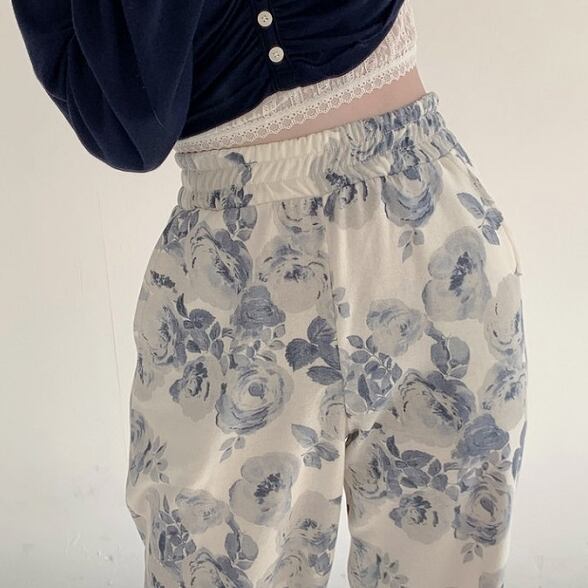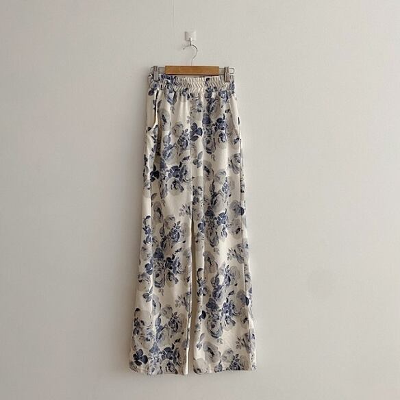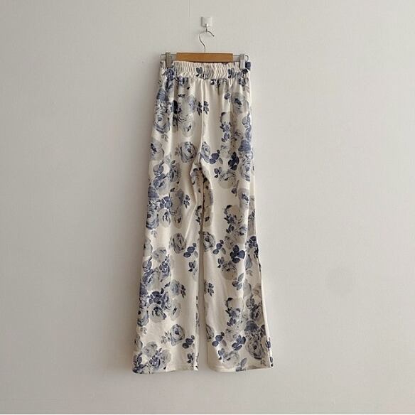 ラフパンツ ボトムス 長ズボン 総柄 花柄 フラワー 花柄 フローラル クラシカル ニュアンスカラー ナチュラルカラー レトロ フレアパンツ スリット ウエストゴム セミフレア パンツ ハイウエスト ストレッチ 美脚 動きやすい 韓国 かわいい 可愛い リラックス きれいめ 楽ちん 春 スプリング 夏 サマー 冬 ウィンター ストリート カジュアル レディース カジュアル ストリート レトロ 美脚 女性用 高校生 10代 20代 30代 ブルー アプリコット