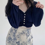 ニュアンスカラーが大人っぽい大花柄が華やかなデザインです。