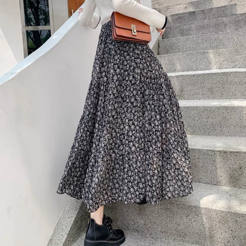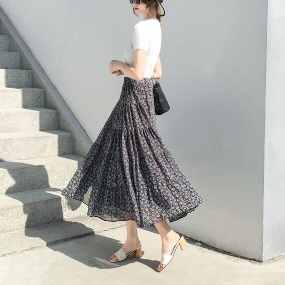 ボトムス フレア スカート ロング丈 小花柄 フローラル ハイウエスト シフォン Aライン フラワー かわいい 大人可愛い きれいめ シンプル カジュアル 大人 上品 おしゃれ お洒落 かっこいい 大人可愛い 大人女子 こなれ感 ラフ ラブリー キュート ガーリー ルーズ モード系 10代 20代 30代 40代 レディース デート お出かけ 着回し 普段使い 重ね着 韓国系 オルチャン ファッション コーデ 楽ちん 体系カバー 激安 送料無料 流行 インスタ映え ブラック 黒