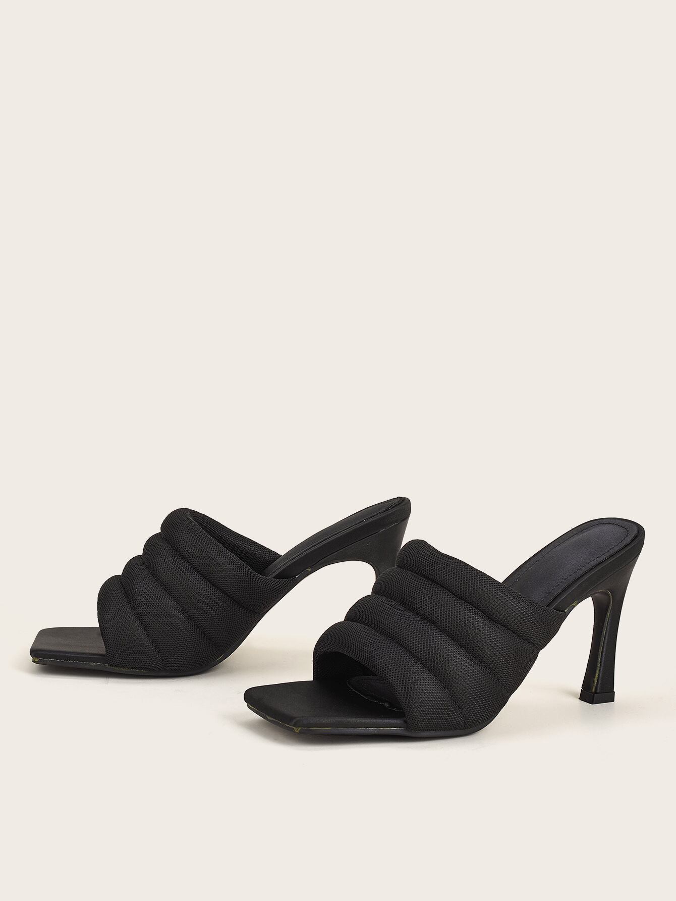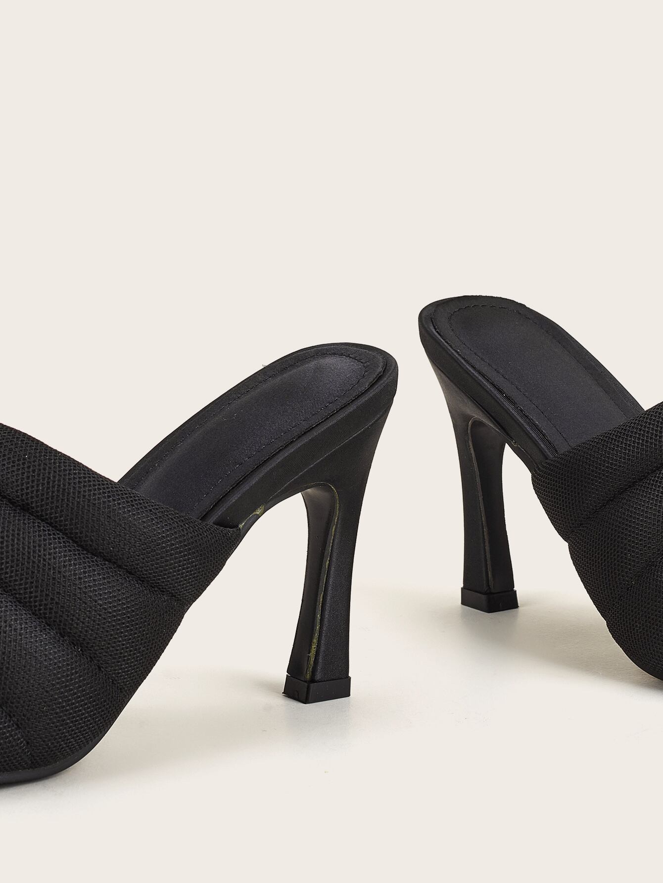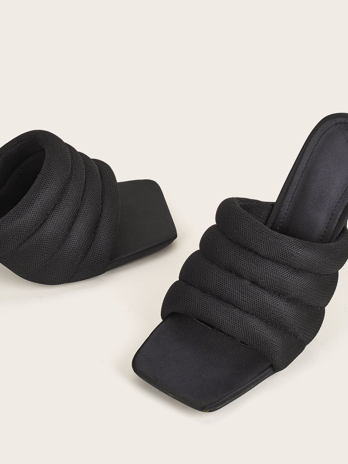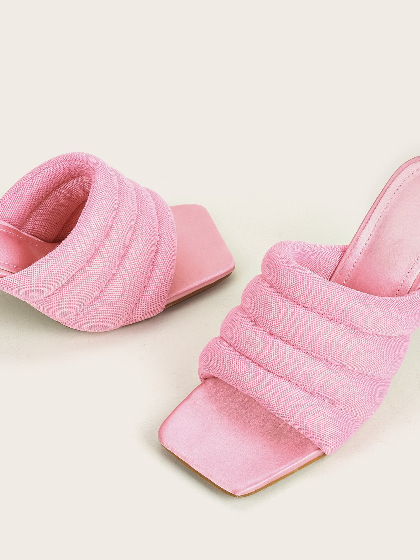 もこもこメッシュディテールが個性的で履くだけで女性らしい印象になるスクエアミュールです。