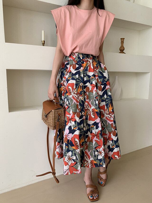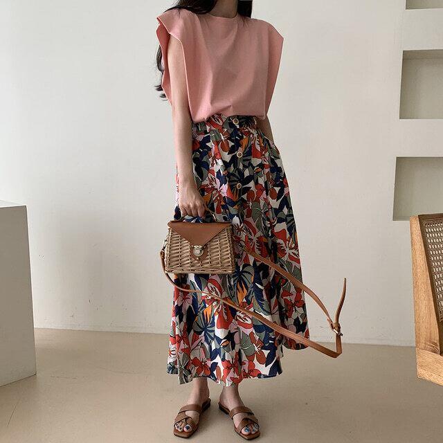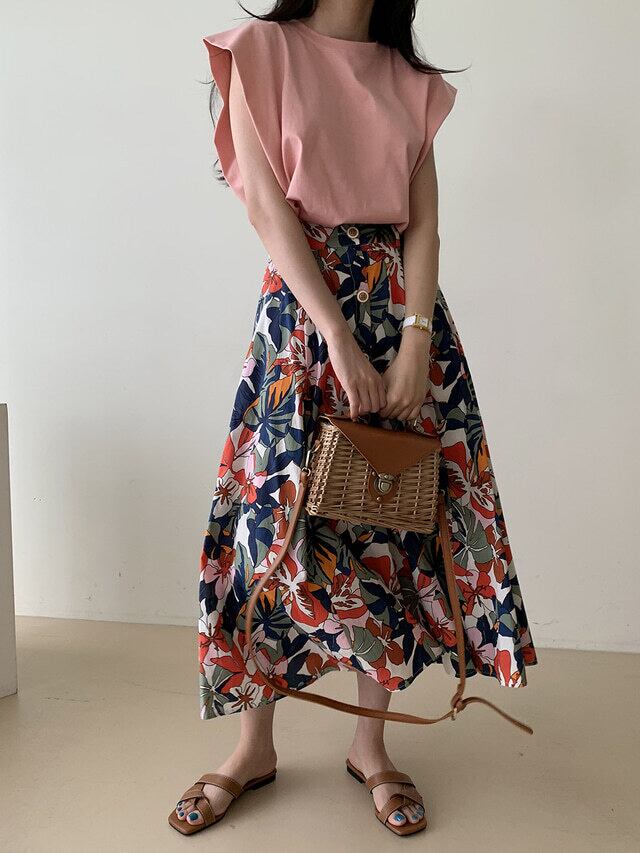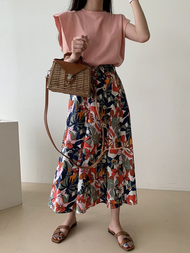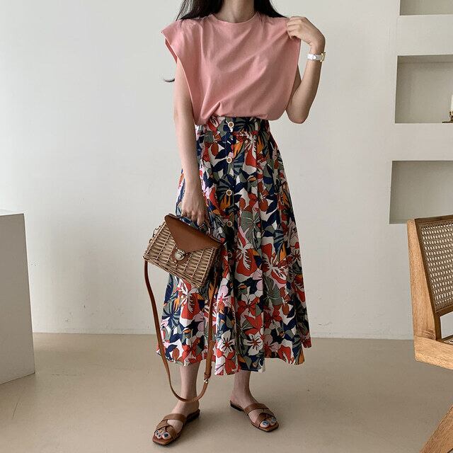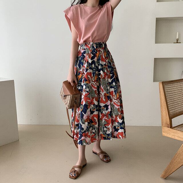 ボトムス フレア スカート Aライン カラフル フラワー 花柄 ハイウエスト ウエストゴム ロング丈 レトロ かわいい 大人可愛い きれいめ シンプル カジュアル 大人 上品 おしゃれ お洒落 かっこいい 大人可愛い 大人女子 こなれ感 ラフ ラブリー キュート ガーリー ルーズ モード系 10代 20代 30代 40代 レディース デート お出かけ 着回し 普段使い 重ね着 韓国系 オルチャン ファッション コーデ 楽ちん 体系カバー 激安 送料無料 流行 インスタ映え